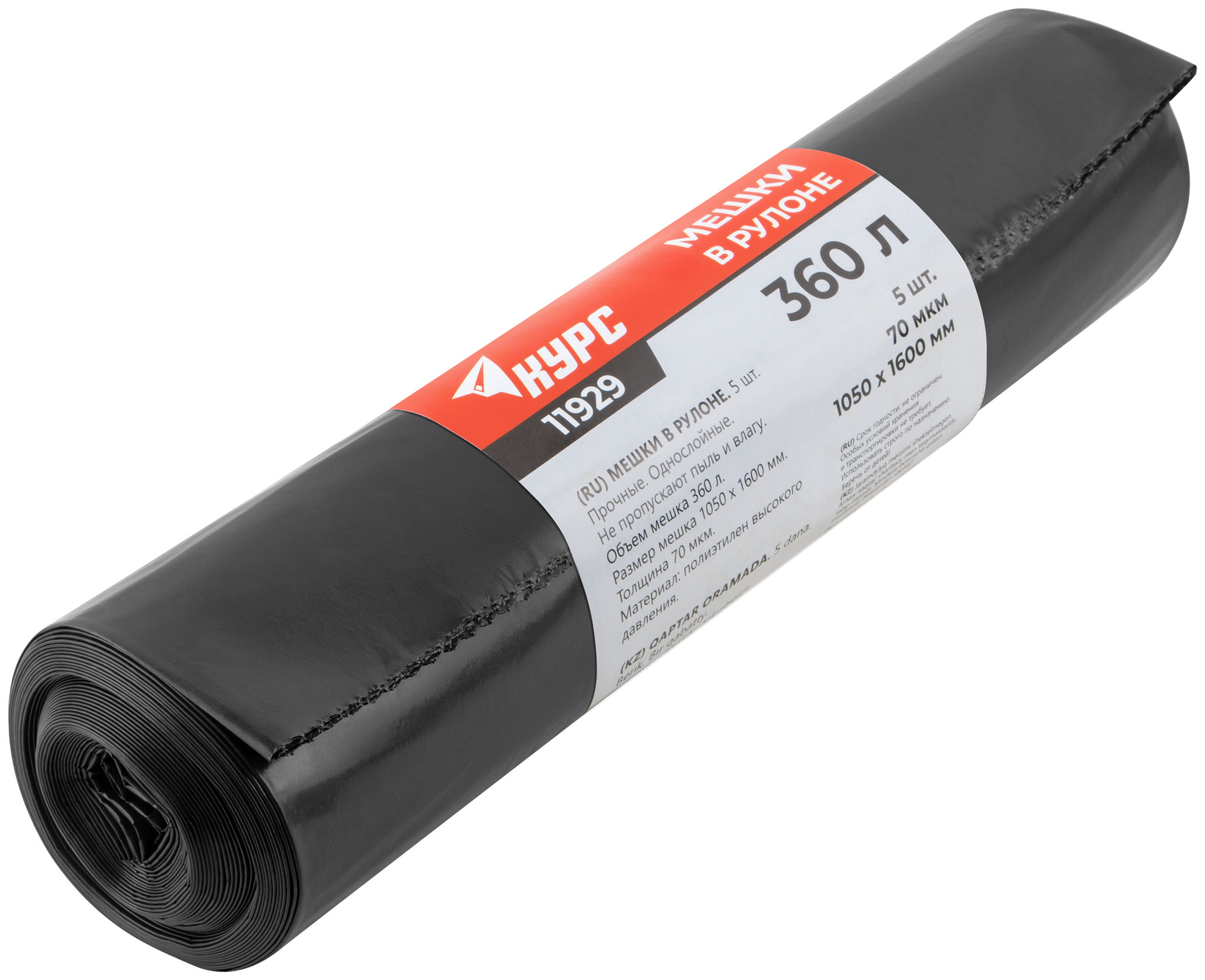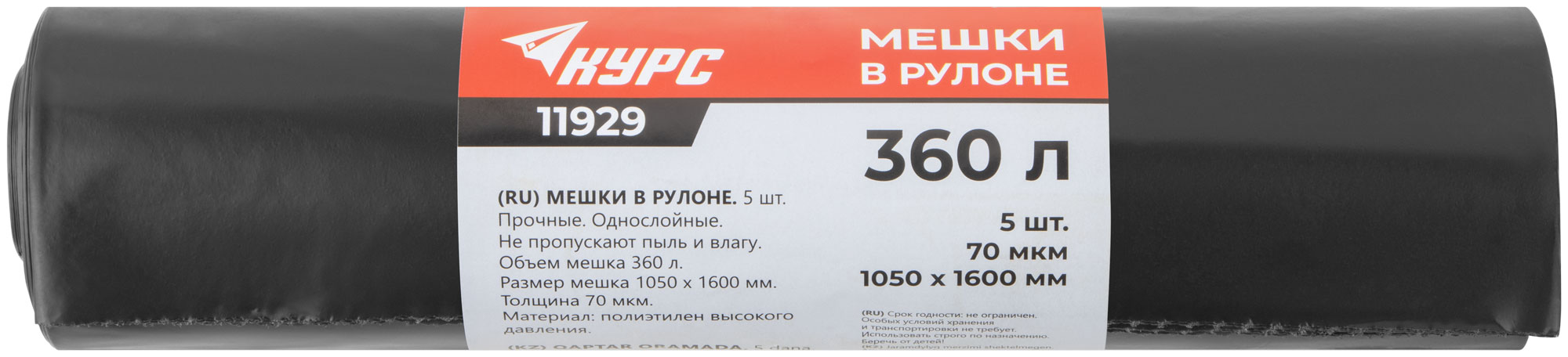 Мешки для строительного мусора, ПВД прочные, 360 л, 1050х1600 мм, толщина 70 мкм, 5 шт.
