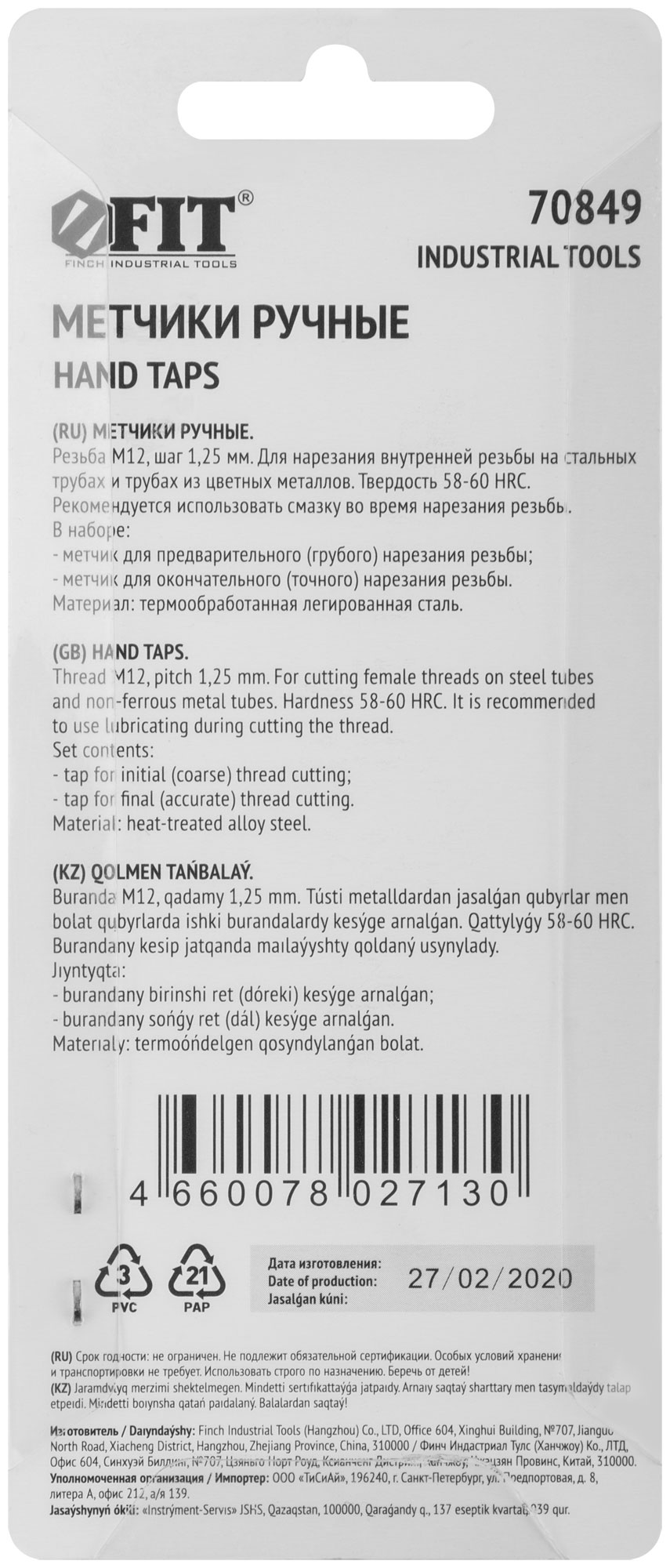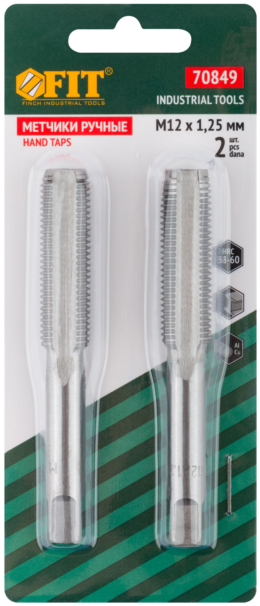 Набор 2 шт. (грубая и точная резьба). Для нарезания внутренней резьбы на изделиях из стали и цветных металлов. Закалка до HRC 58-60. Материал: легированная сталь. Упаковка: блистер.