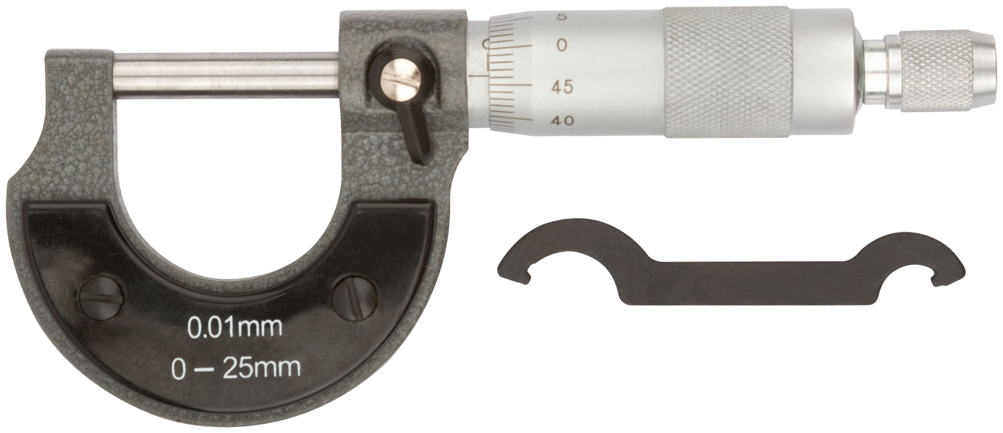 Для особо точных наружных измерений. Точность ±0,004 мм. Цена деления 0,01 мм. Материал: инструментальная сталь, пластиковая накладка. Упаковка: пластиковый футляр.