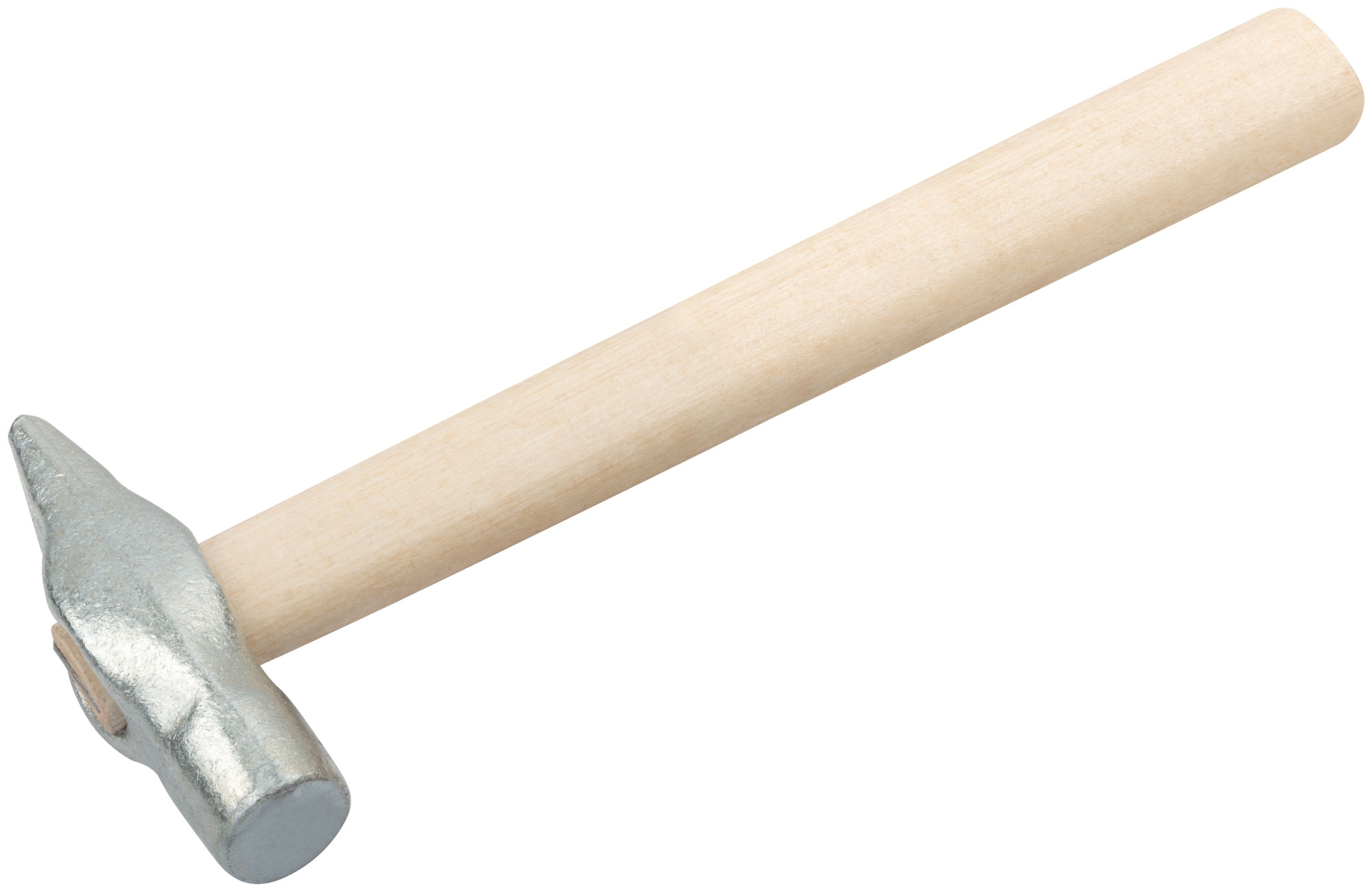 С круглым бойком, оцинкованный. Материал: инструментальная сталь, деревянная ручка.