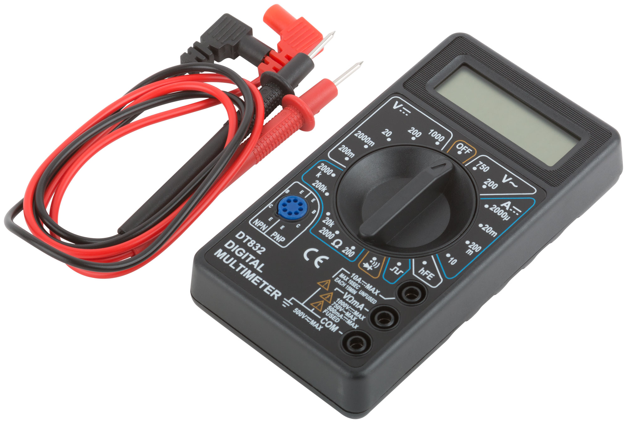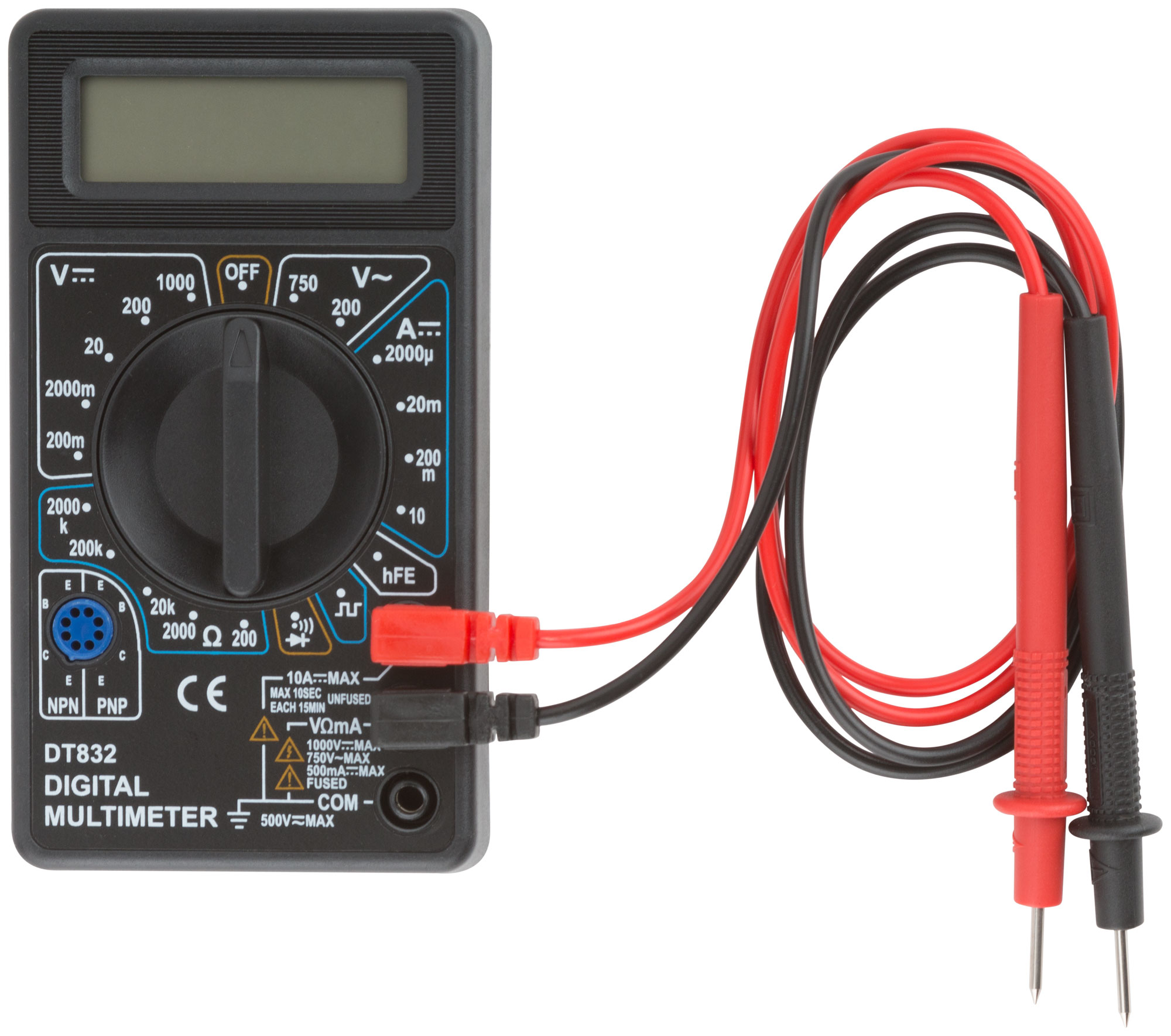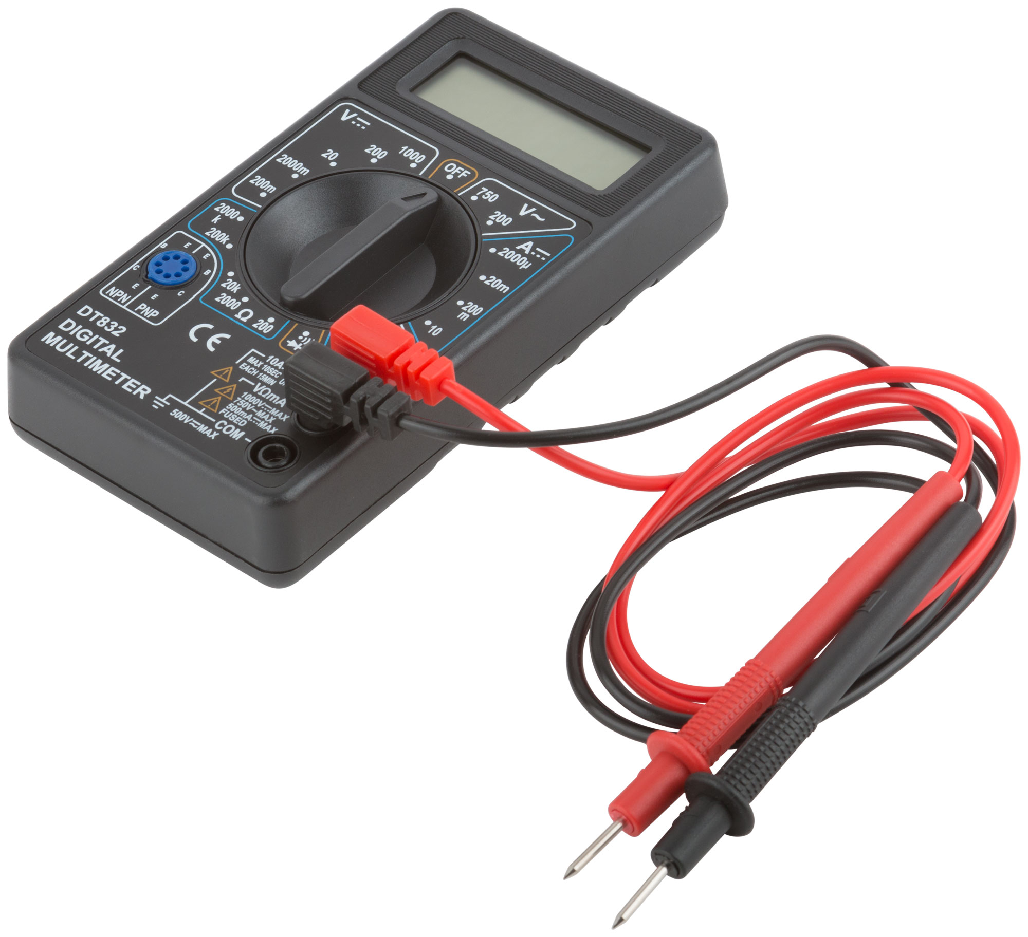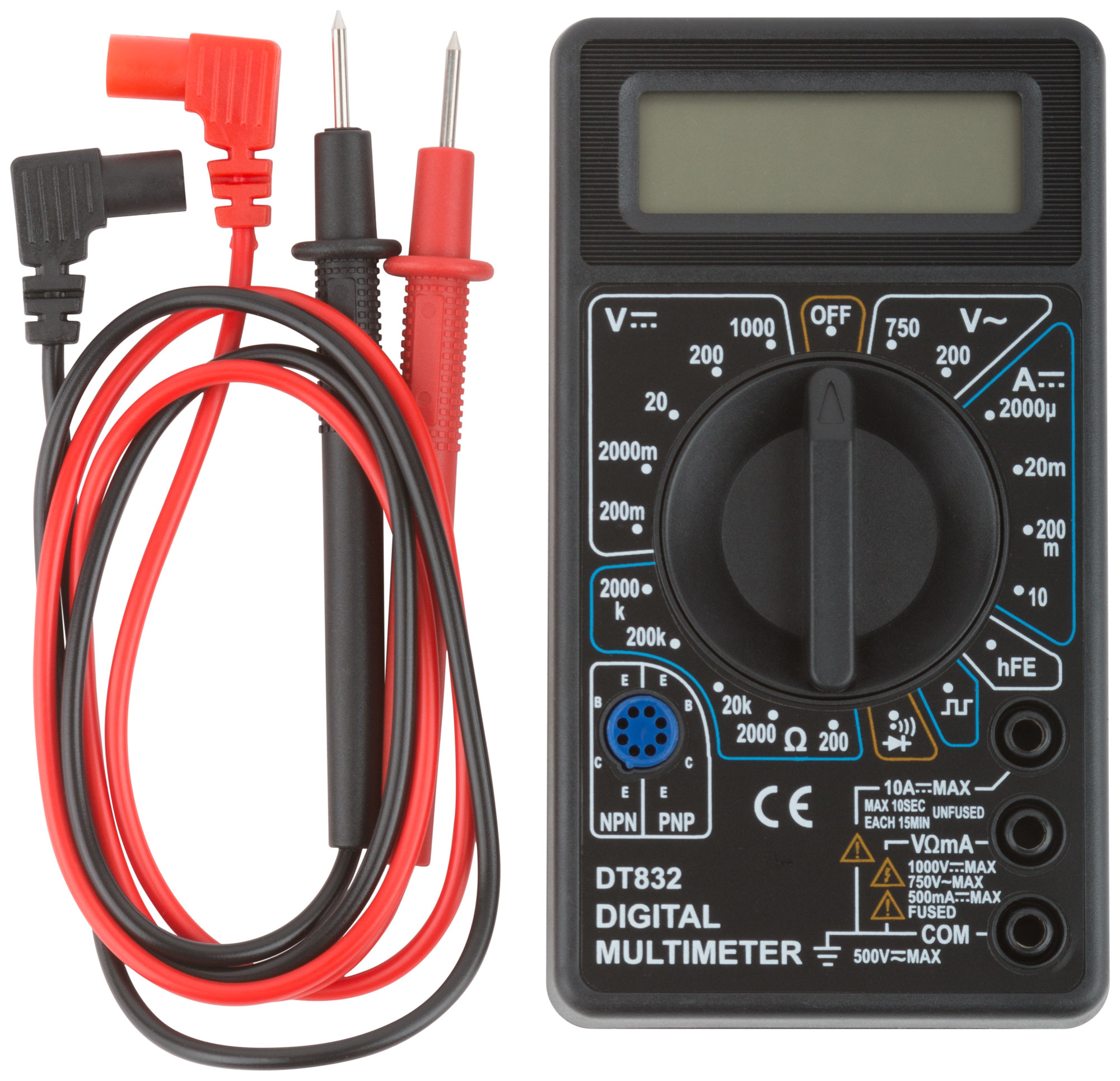 Мультиметр 0,1 мВ-1000 В; 0,1 В-750 В; 1 мкА-10 А; 0,1 Ом-2 МОм; коробка