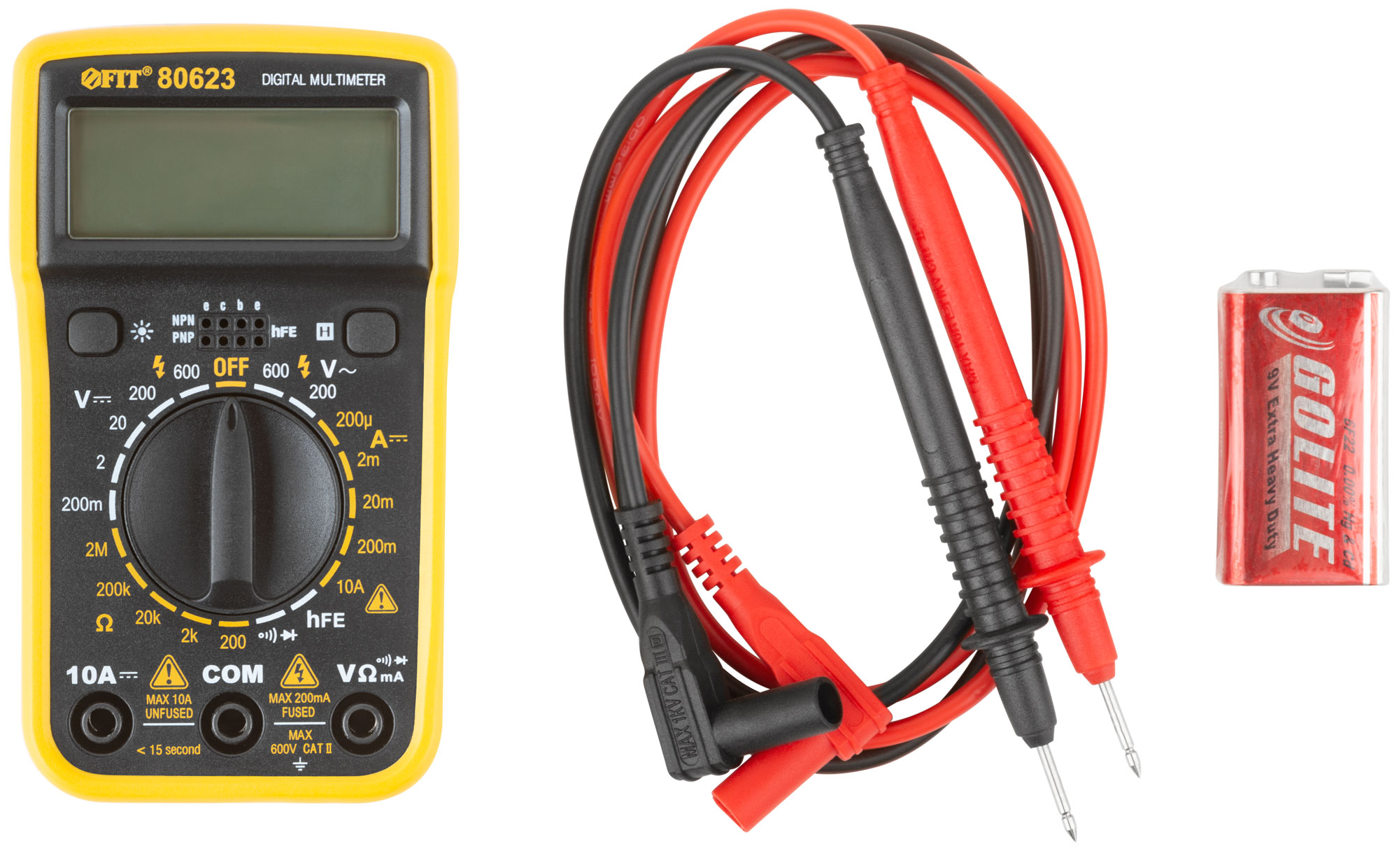 Мультиметр 0,1 мВ-600 В; 0,1 В-600 В; 1 мкА-10 А; 0,1 Ом-2 МОм; коробка