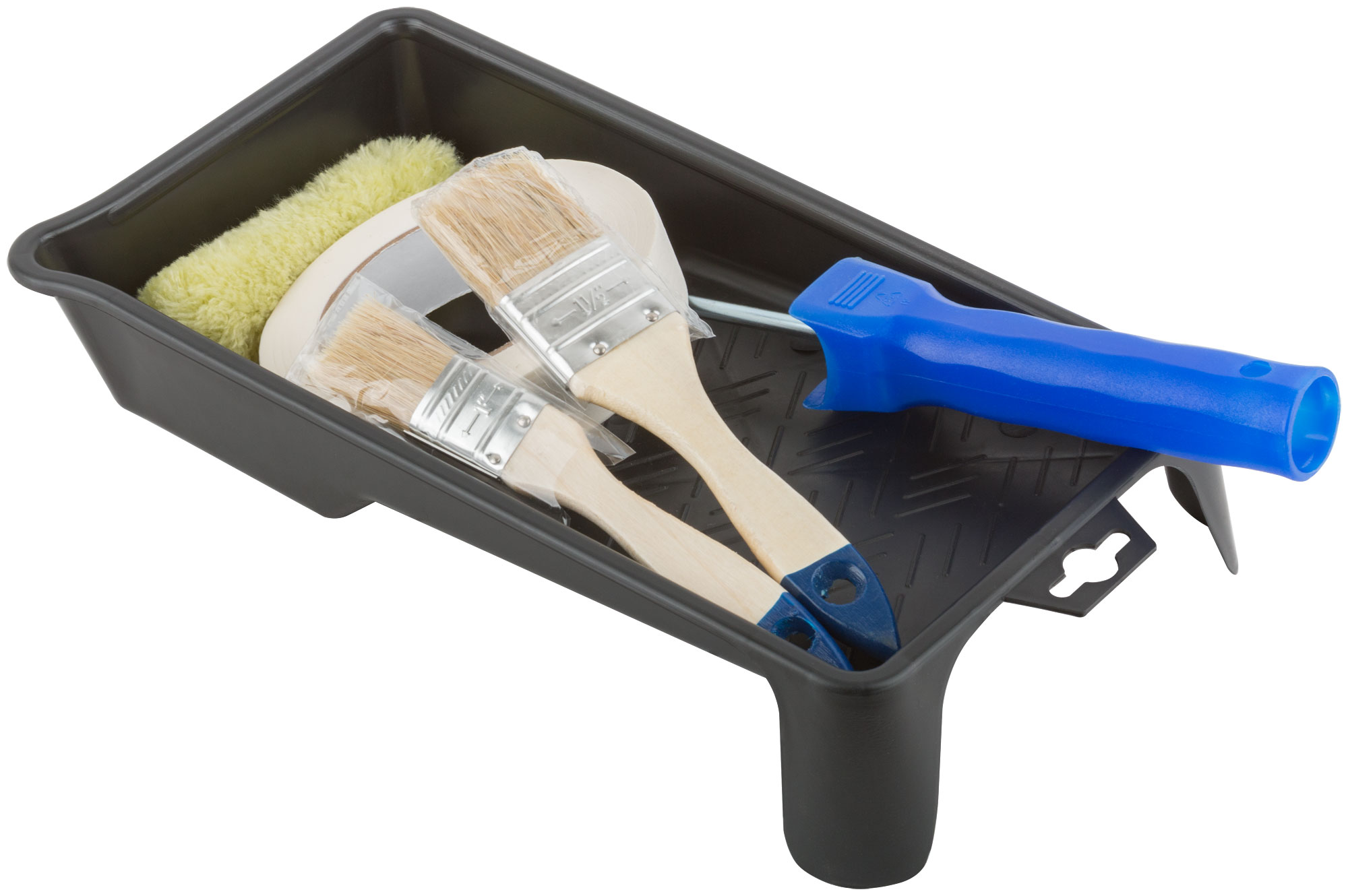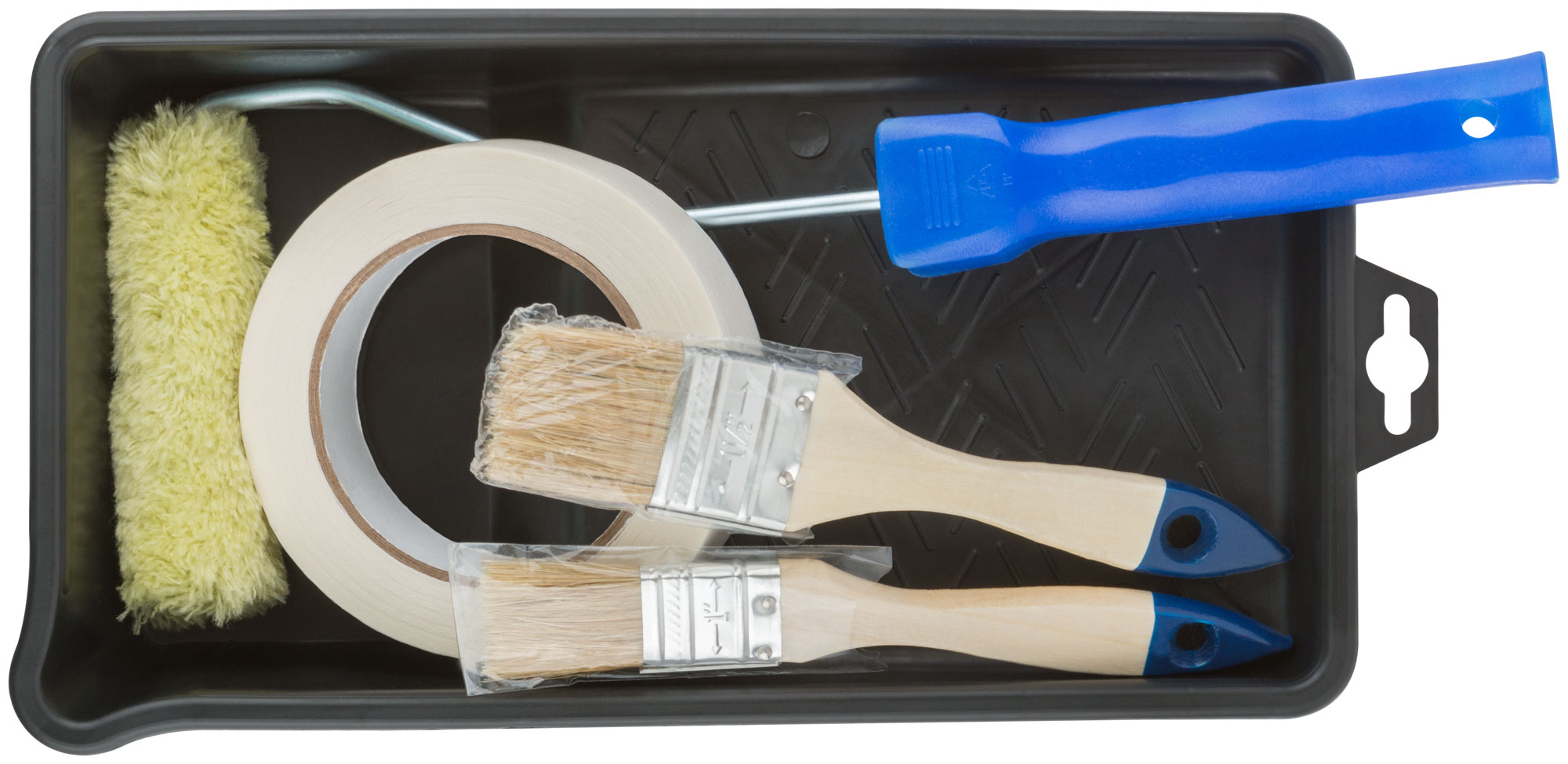 Набор для покраски дверей и окон (ванночка 290х150 мм + валик полиакрил 100 мм + малярная лента 25 мм x 50 м + кисти 25 ; 38 мм)