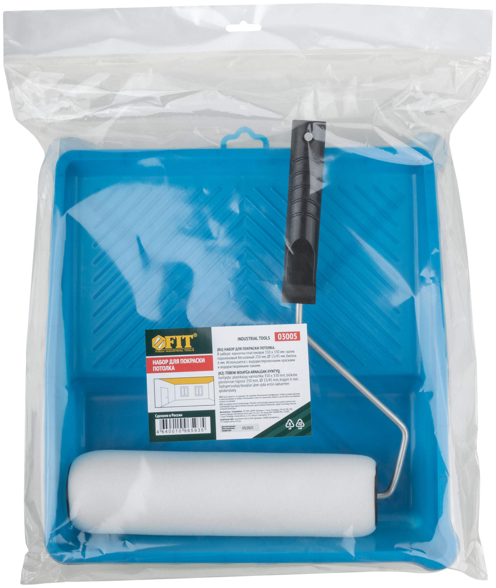 • Ванночка пластиковая 350х330 мм. • Валик 250 мм, поролоновый, беcшовный. O 15/45 мм. Система с пластиковым роликом, бюгель 6 мм. Используется с вододисперсионными красками и водорастворимыми лаками. Упаковка: п/э пакет с подвесом.