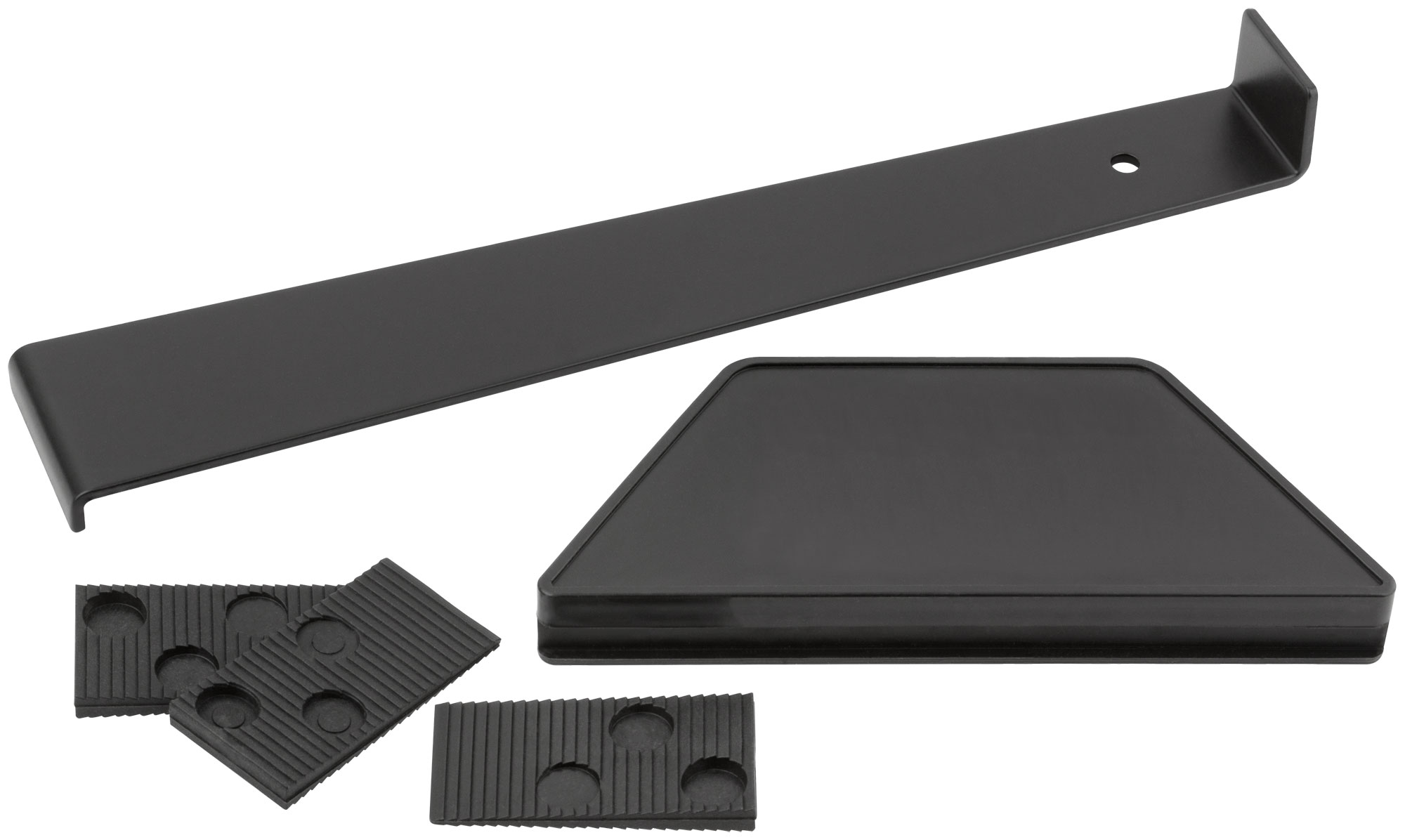 В наборе: пластиковый брусок, монтажная скоба, пластиковые клинья (20 шт.). Регулировка расстояния между ламинатными панелями и стеной с помощью пластиковых клиньев, возможность работы в ограниченном пространстве. Материал: инструментальная сталь, пластик. Упаковка: картонная коробка.