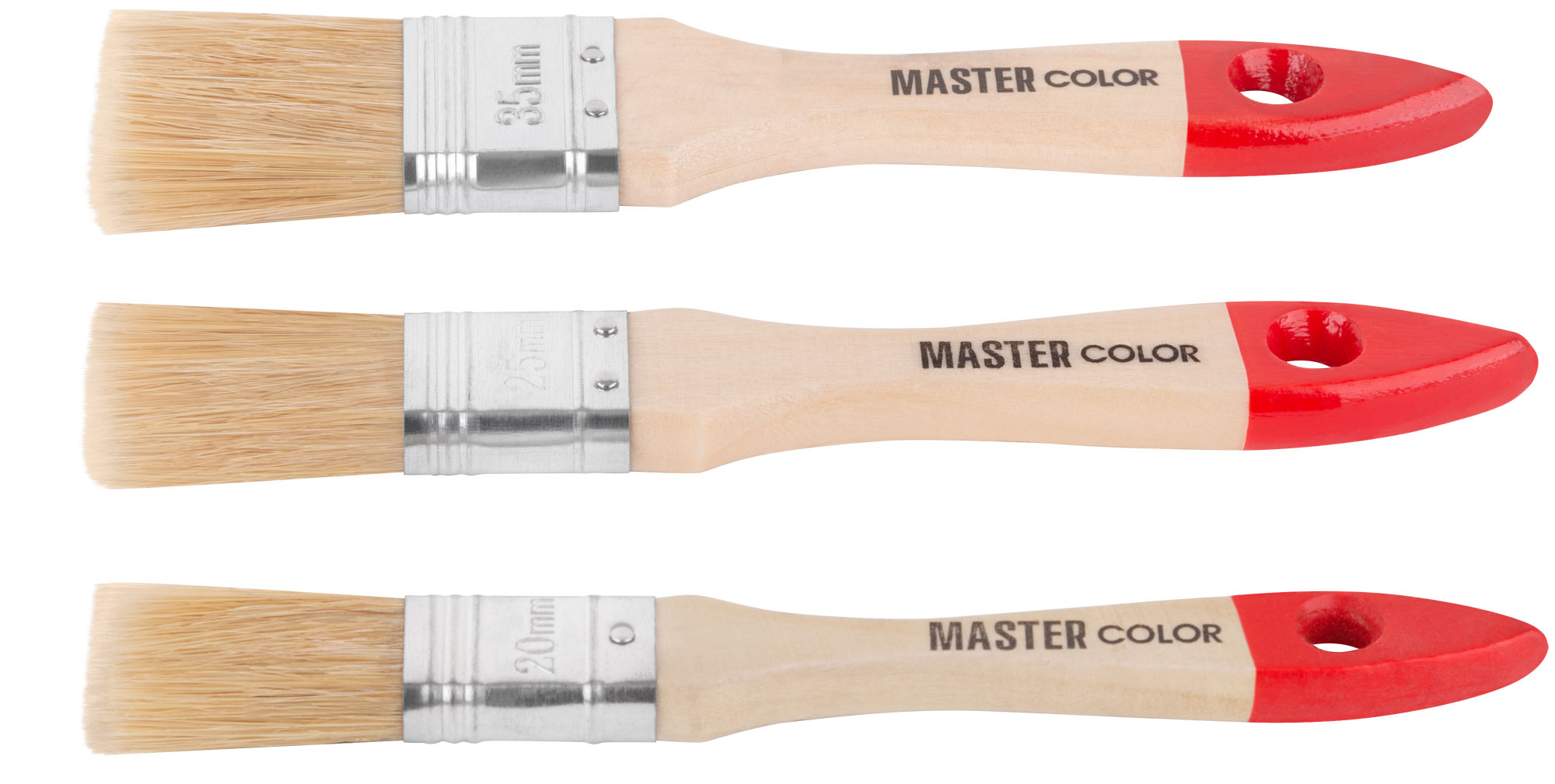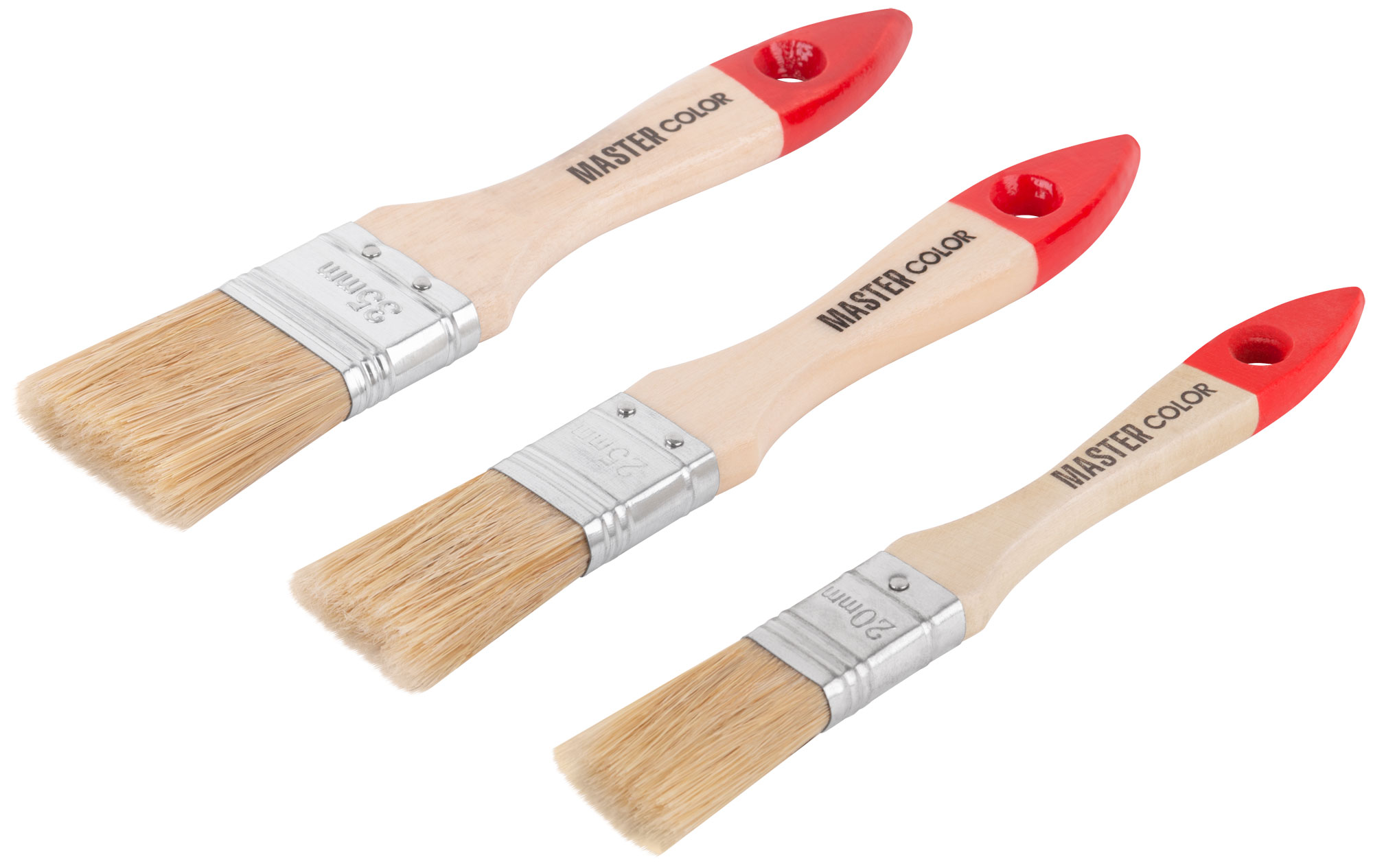 Набор из 3-х флейцевых кистей с деревянными ручками: ширина 20, 25, 35 мм, натур. щетина, 55% топс