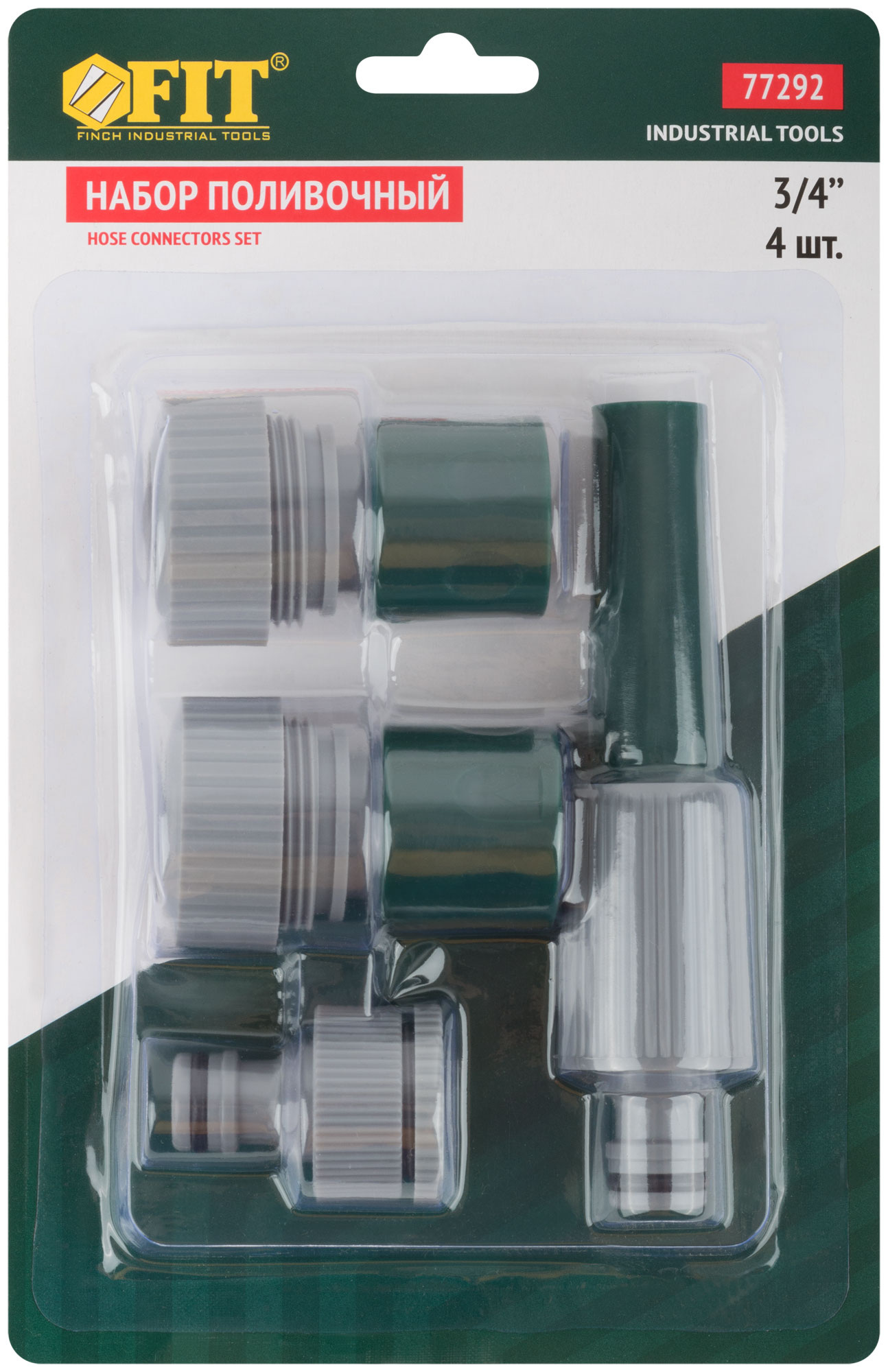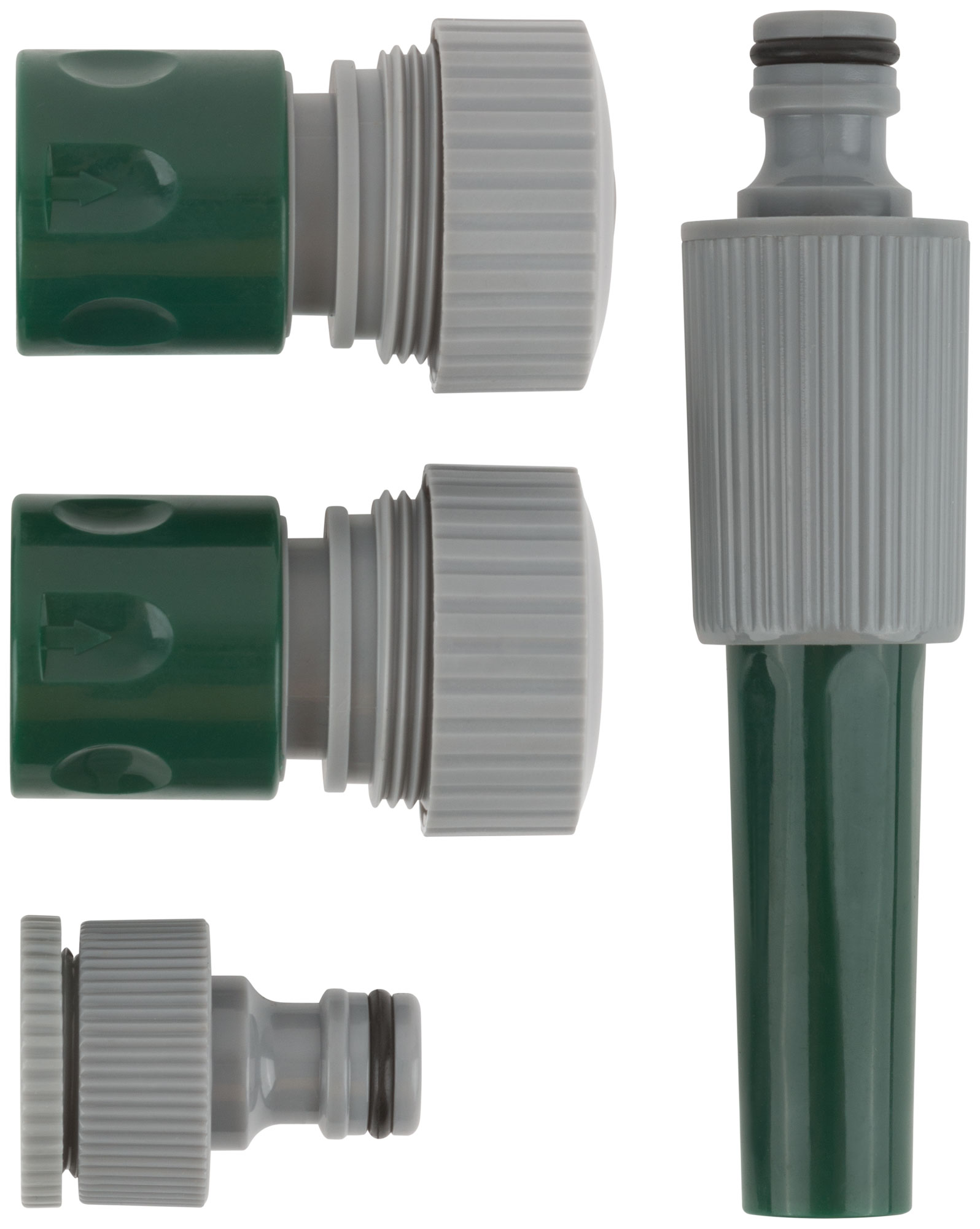Набор поливочный 4 шт. (насадка для полива, соединитель, соединитель с автостопом, адаптер внешний). Материал: ABS пластик.