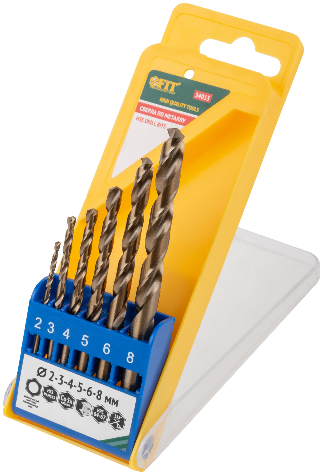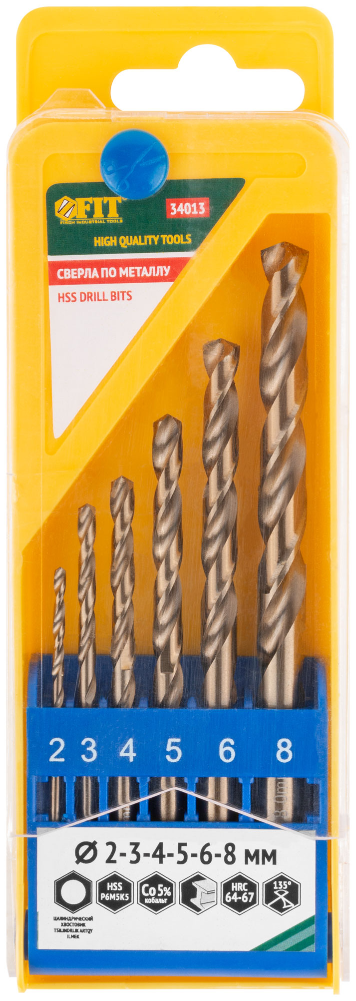 Набор сверл HSS по металлу с добавкой кобальта 5%, 6 шт. (2-3-4-5-6-8 мм)