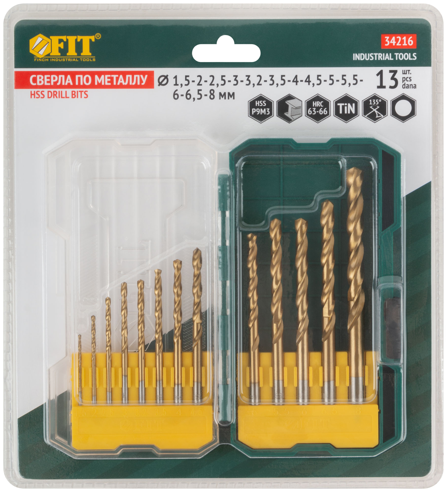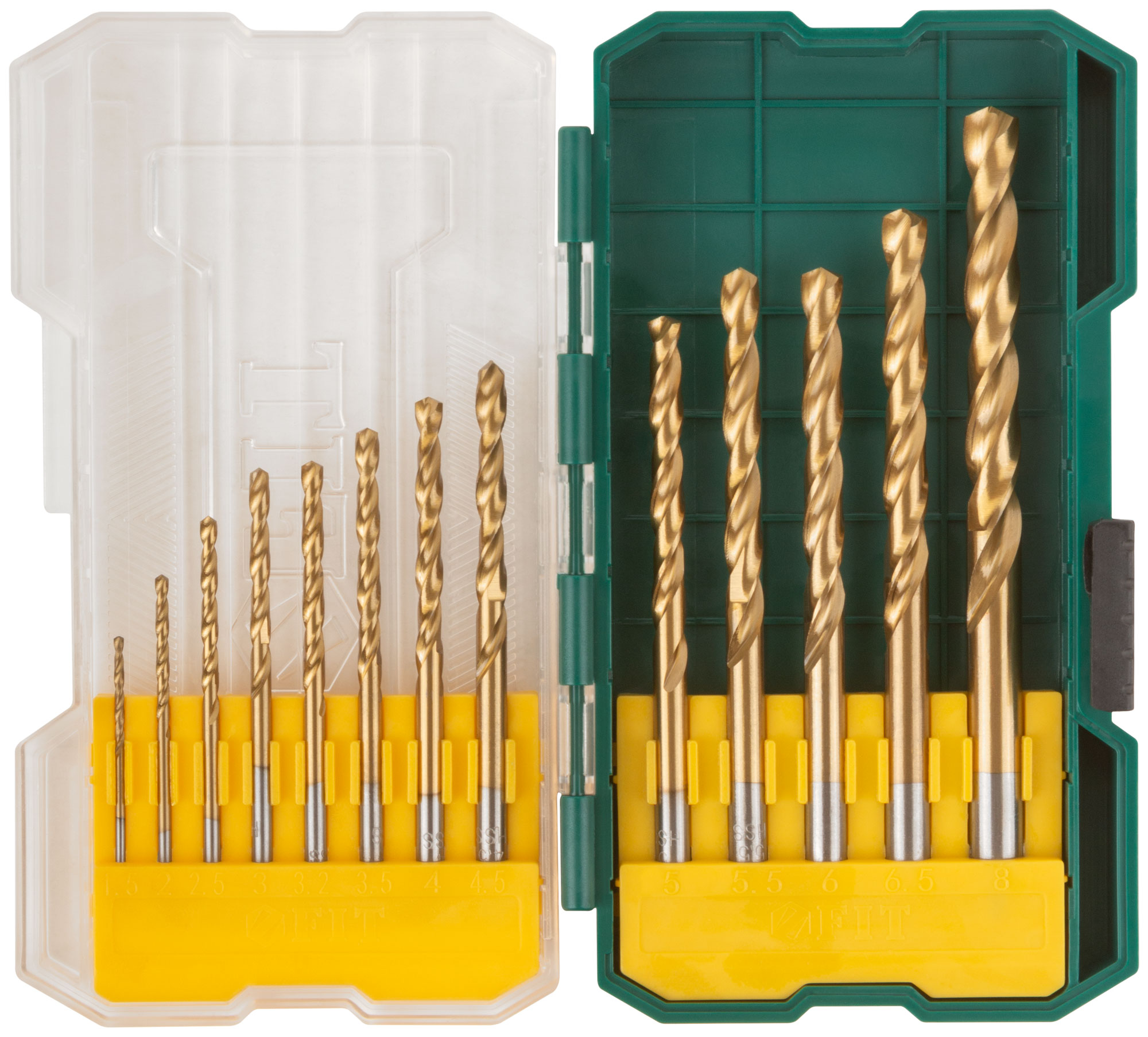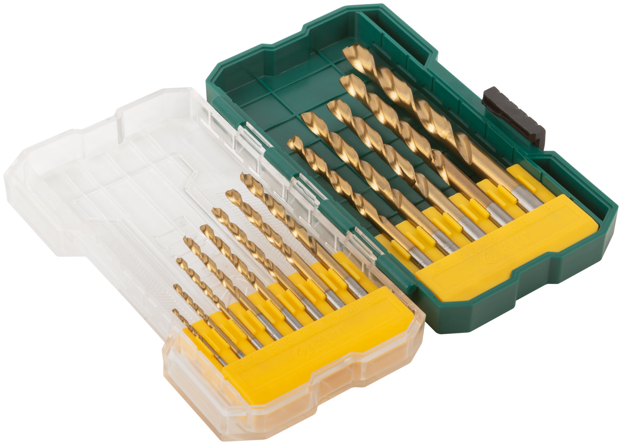 Набор сверл HSS по металлу, титановое покрытие, 13 шт. (1,5-2-2,5-3-3,2-3,5-4-4,5-5-5,5-6-6,5-8 мм)