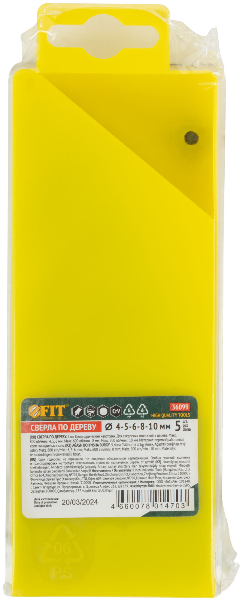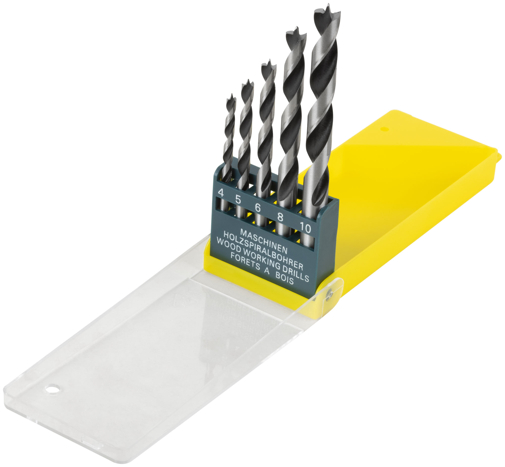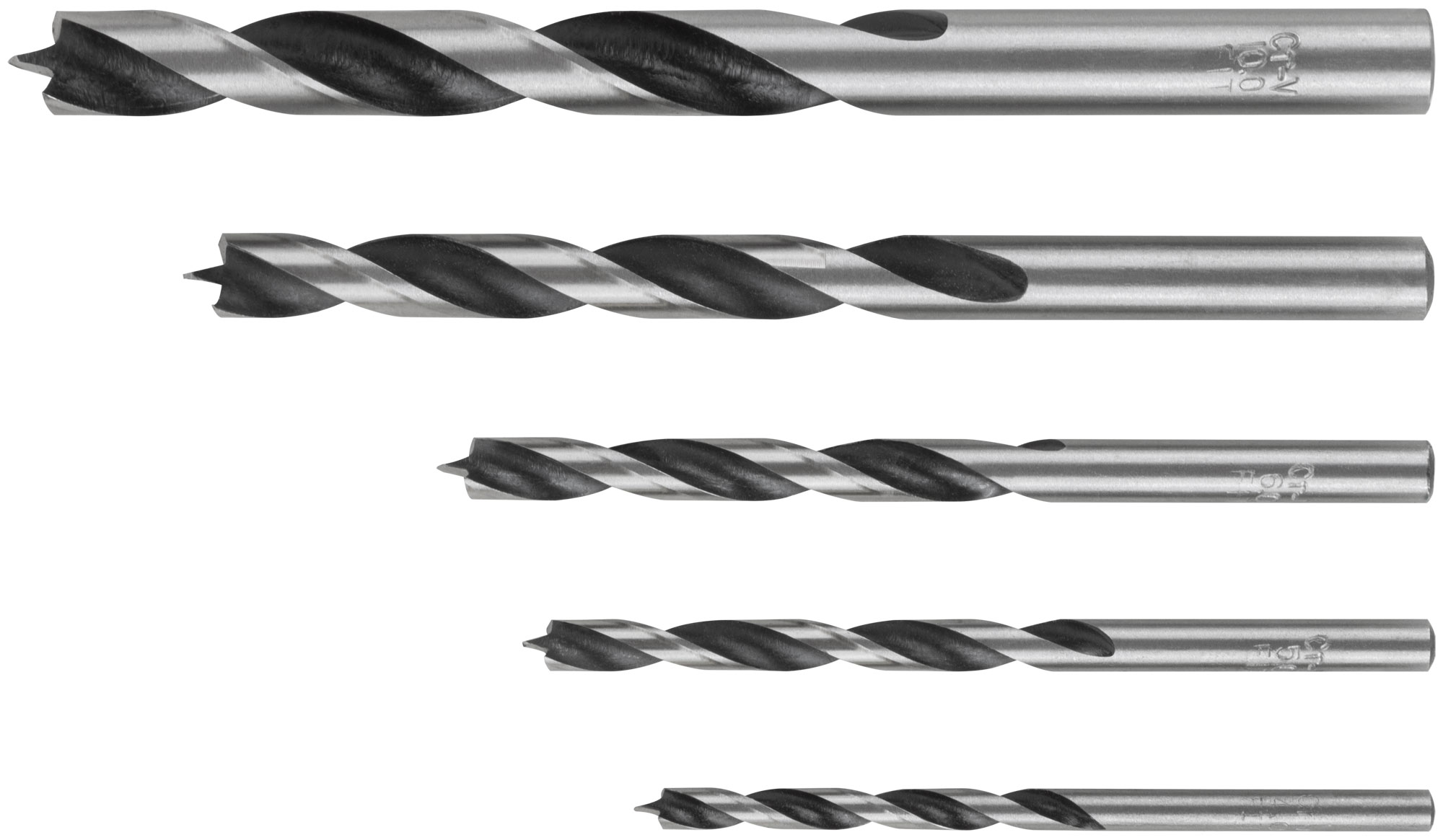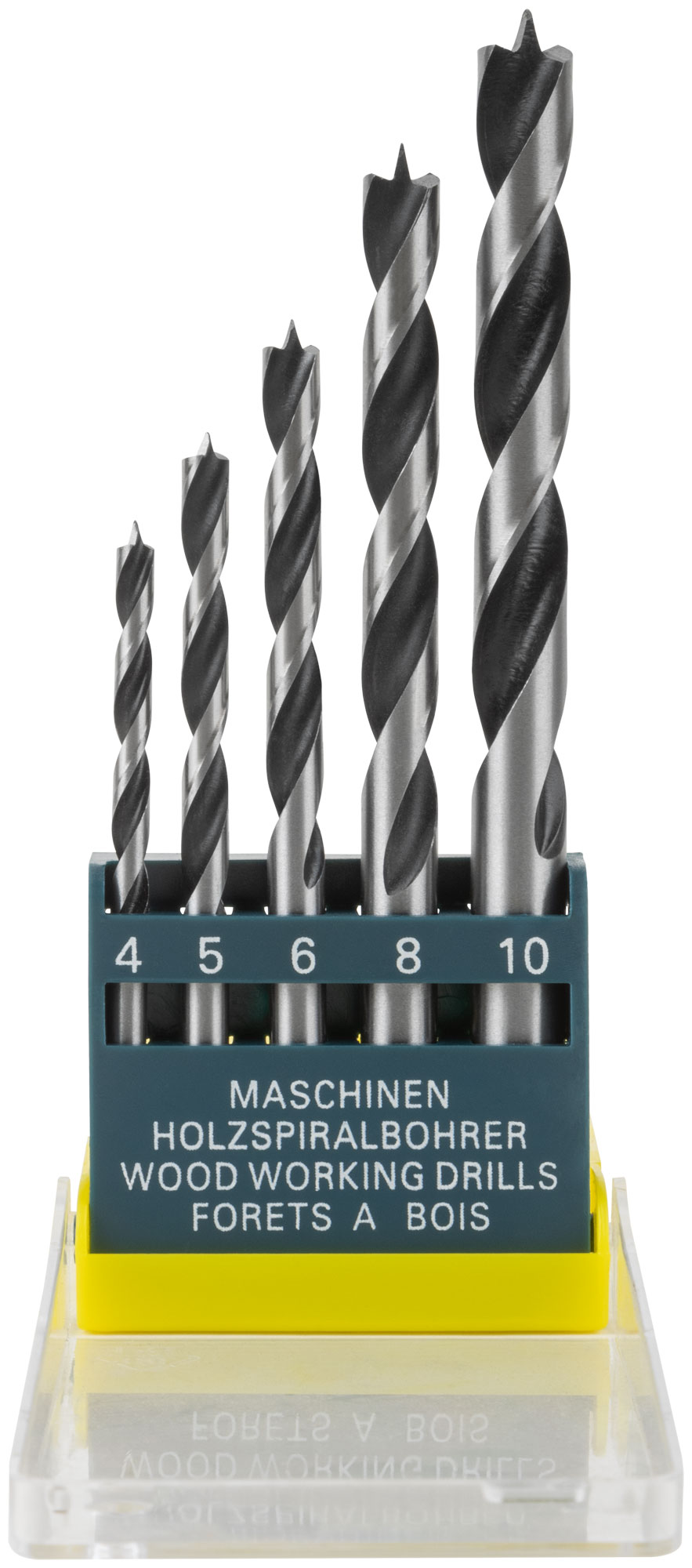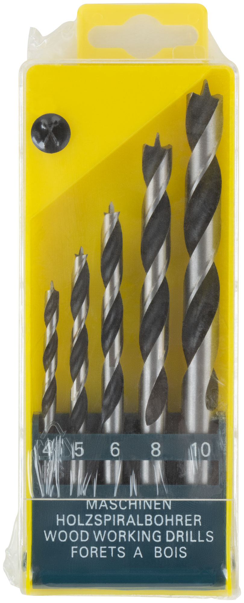 Набор сверл по дереву, CrV Профи, пластиковый бокс, 5 шт. (4-5-6-8-10 мм)
