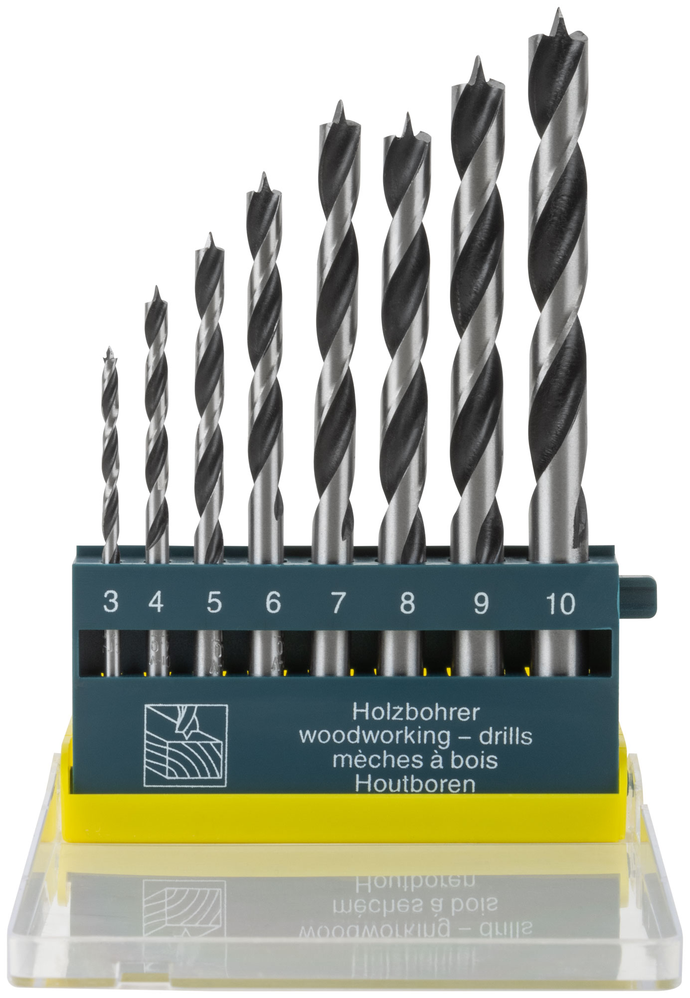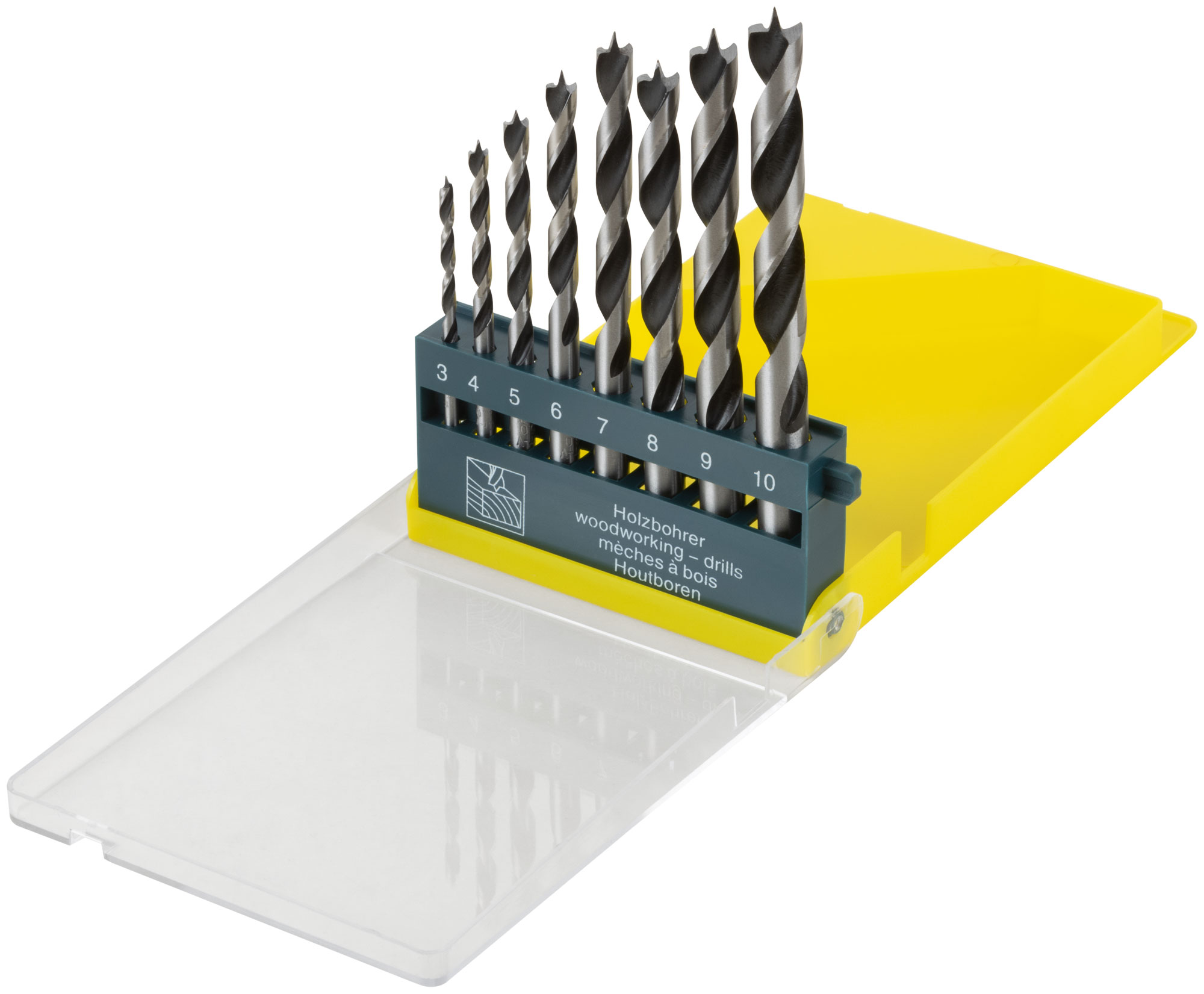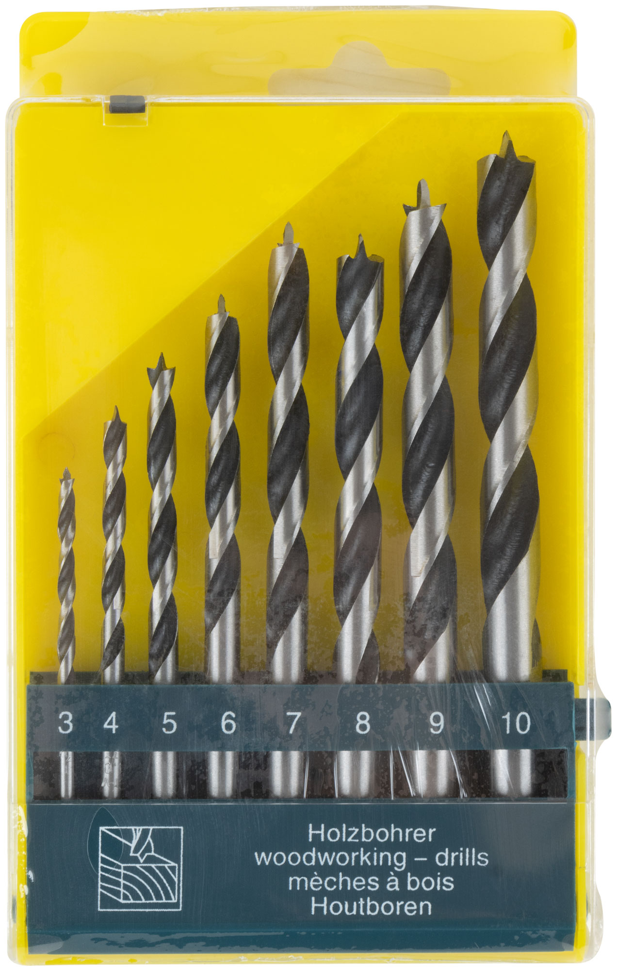 Набор сверл по дереву, CrV Профи, пластиковый бокс, 8 шт. (3-4-5-6-7-8-9-10 мм)
