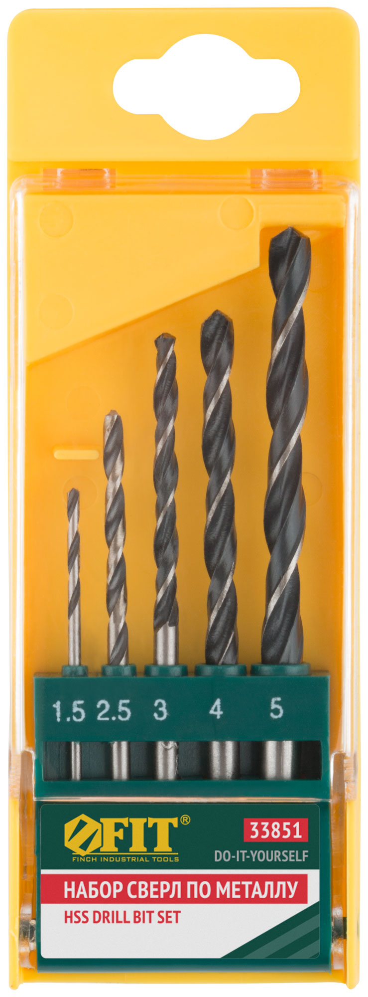 Набор сверл по металлу HSS черненых, 5 шт. (1,5-2,5-3-4-5 мм)