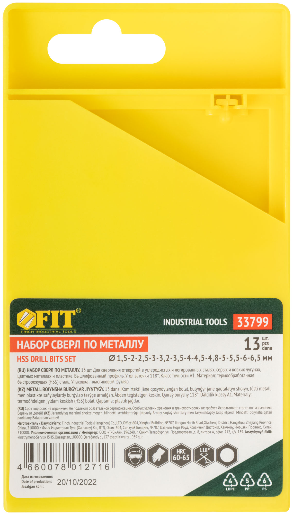 Набор сверл по металлу HSS полированных, 13 шт. (1,5-2-2,5-3-3,2-3,5-4-4,5-4,8-5-5,5-6-6,5 мм)