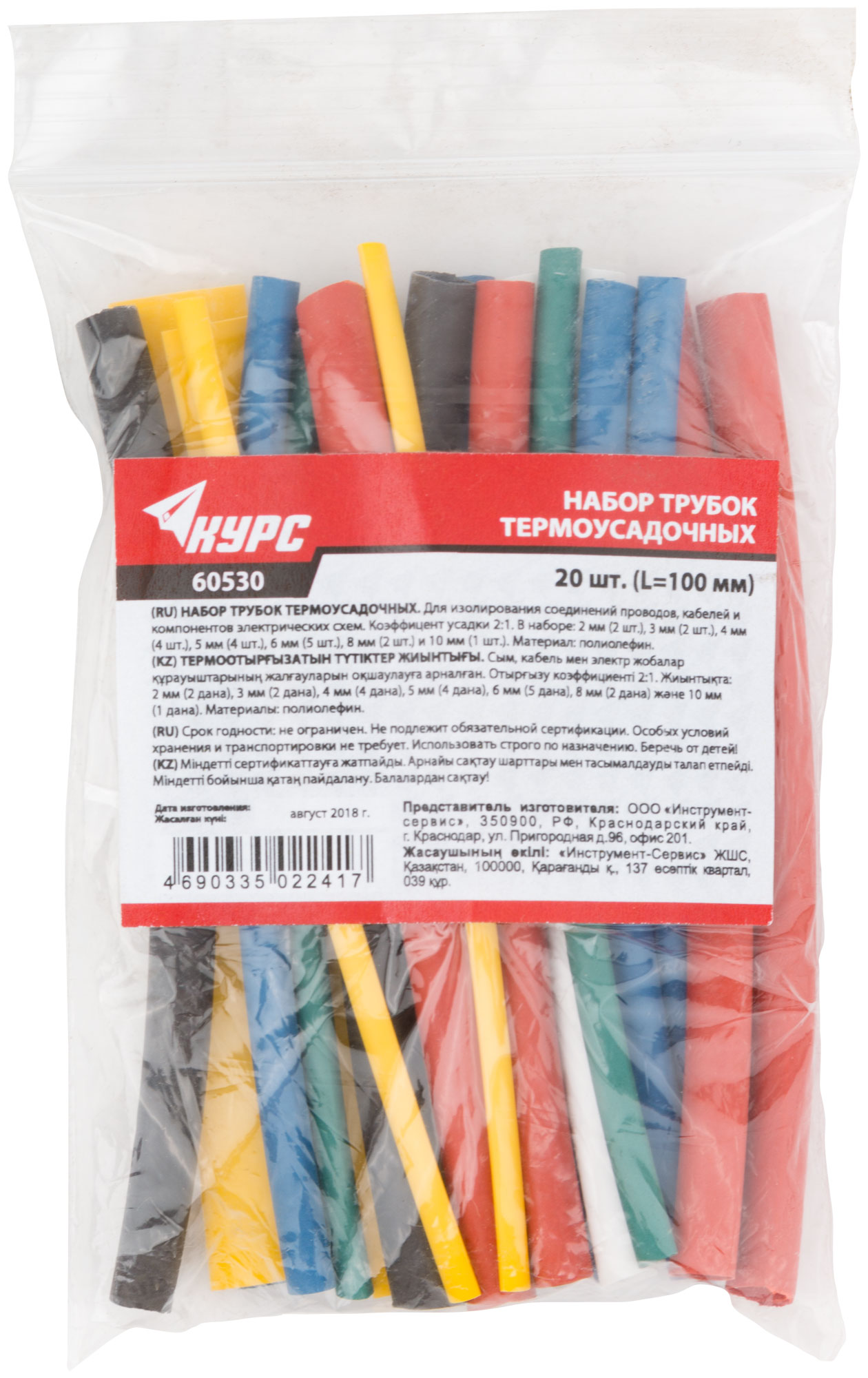 Набор трубок термоусадочных, 100 мм, 20 шт.