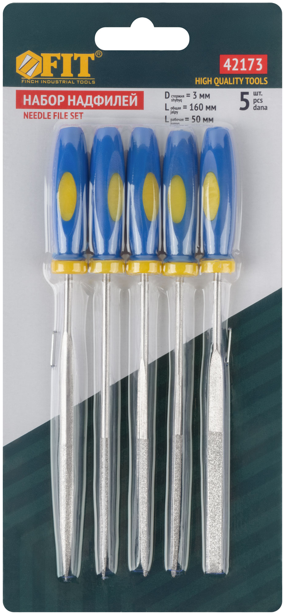 Надфили алмазные, мягкая ручка, 3х140/50 мм, 5 шт.
