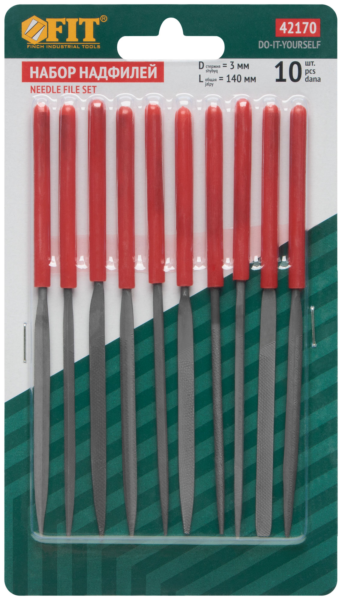 Надфили узкие, ПВХ ручка 3х140/60 мм, 10 шт.