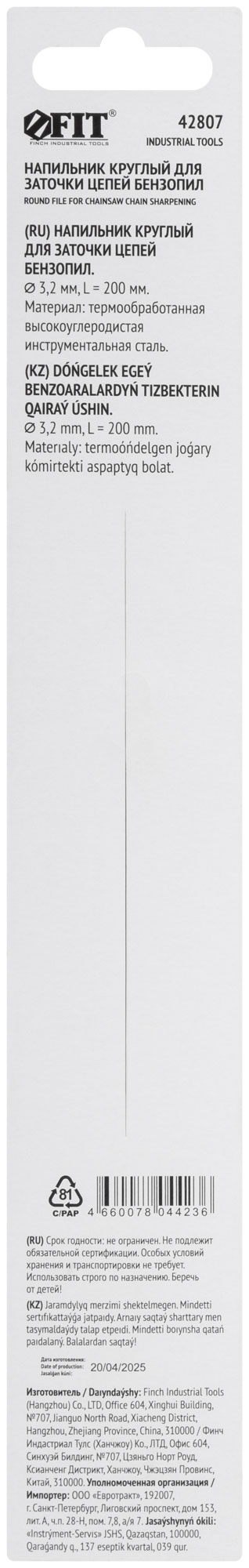 Напильник для заточки цепей бензопил круглый 200 х 3,2 мм