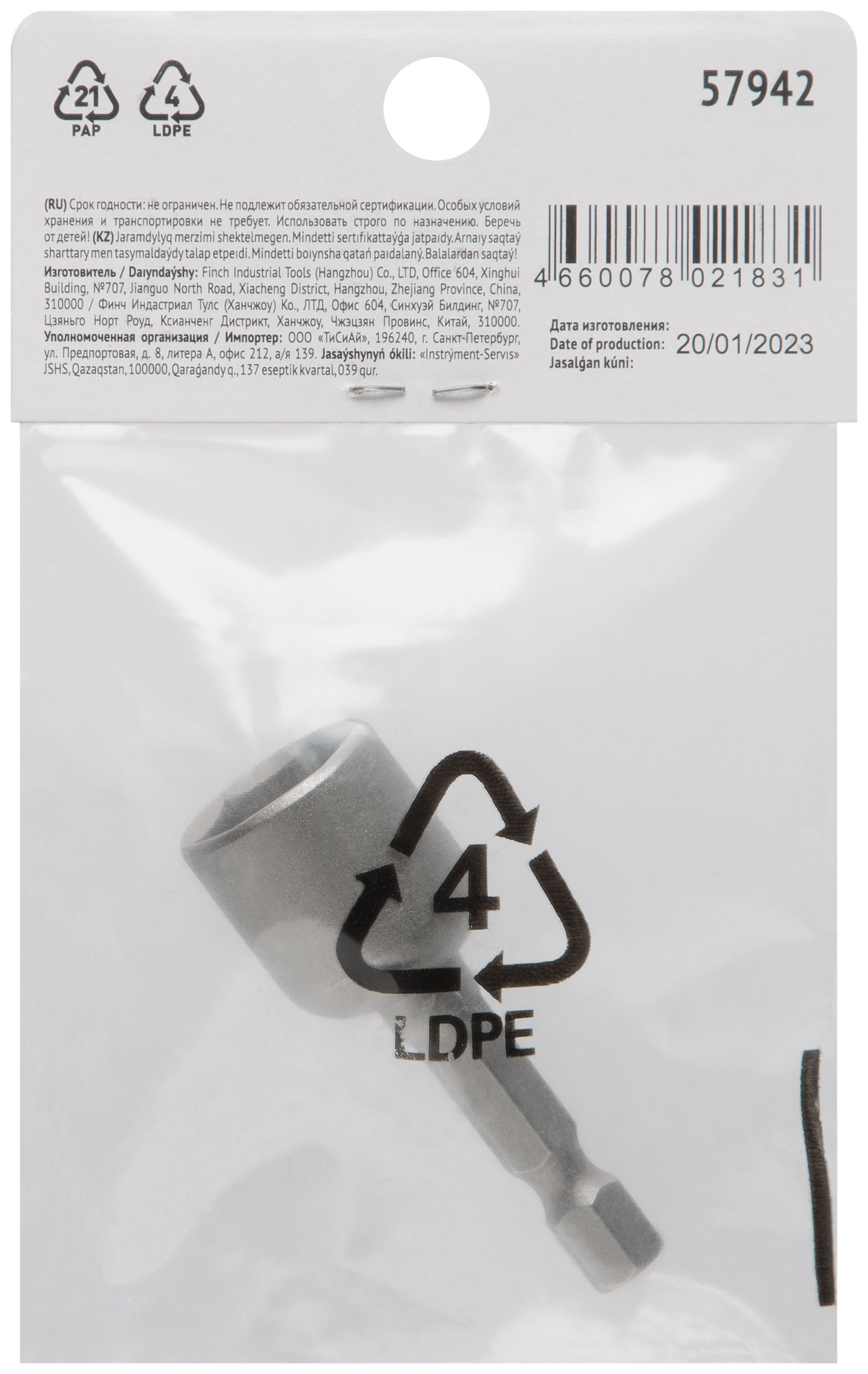 Профи. С шестигранной головкой и магнитом. Для работы с шурупами и болтами с шестигранной головкой. Упаковка: п/э пакет с картонным подвесом.
