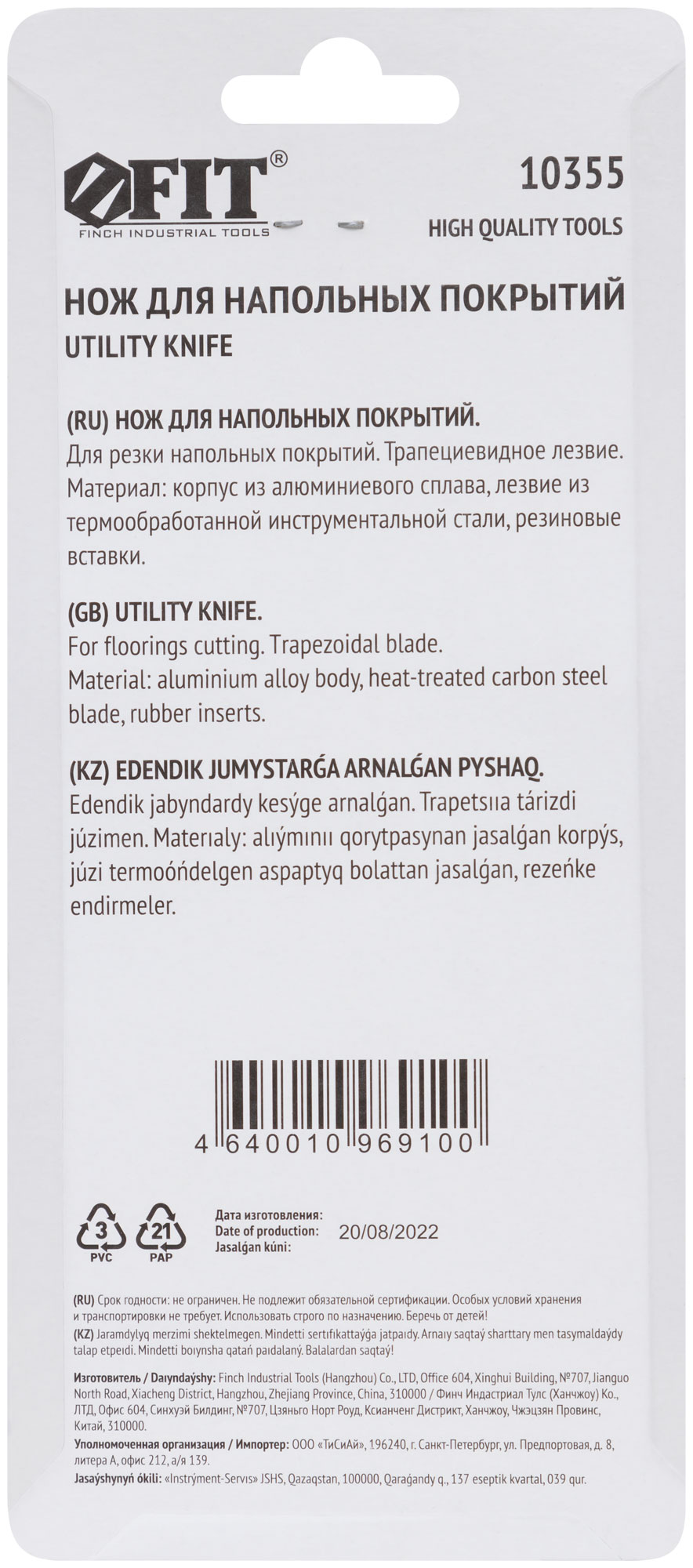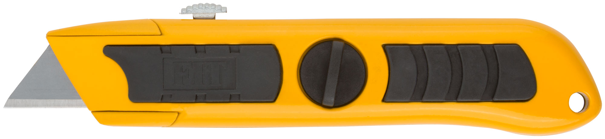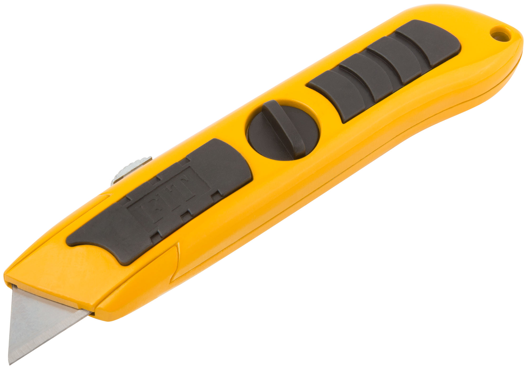 Профи. Для резки напольных покрытий. Материал: трапециевидное лезвие из инструментальной стали, металлический оцинкованный корпус с мягкой резиновой вставкой. Упаковка: блистер.