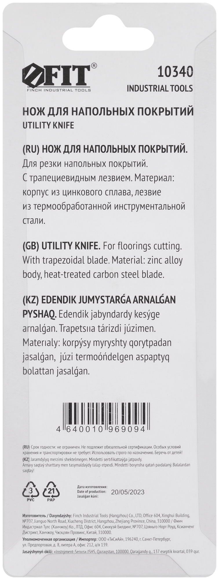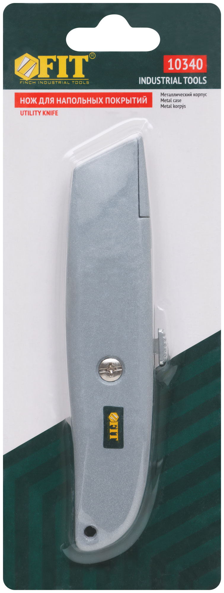 Для резки напольных покрытий. Материал: трапециевидное лезвие из инструментальной стали, металлический корпус. Упаковка: блистер.