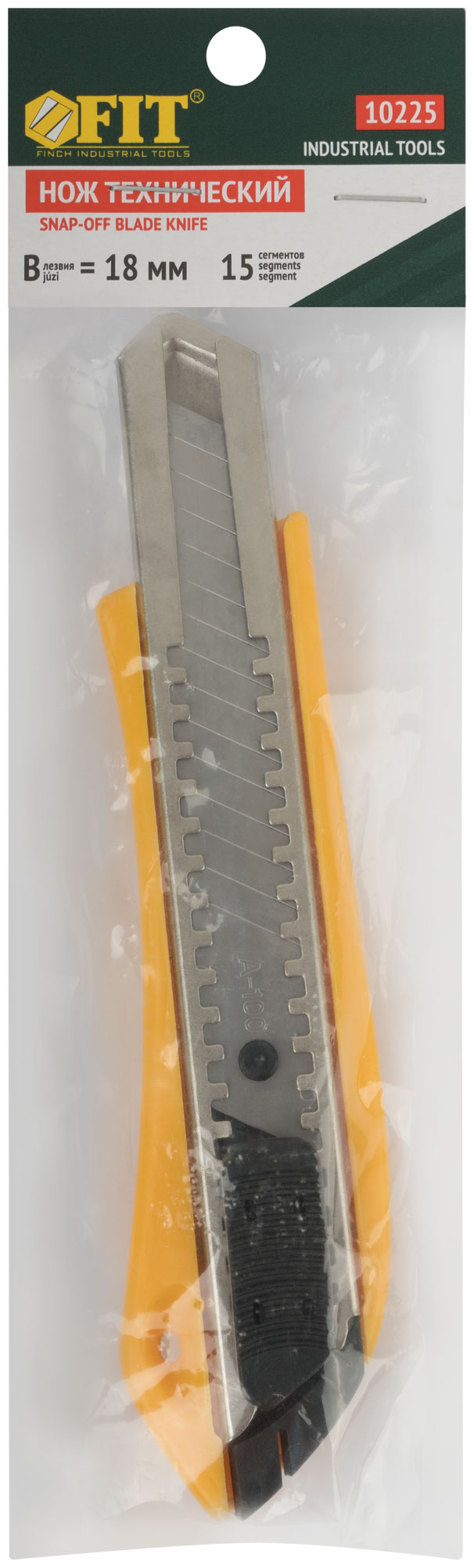 Нож технический 18 мм усиленный пластиковый, лезвие 15 сегментов