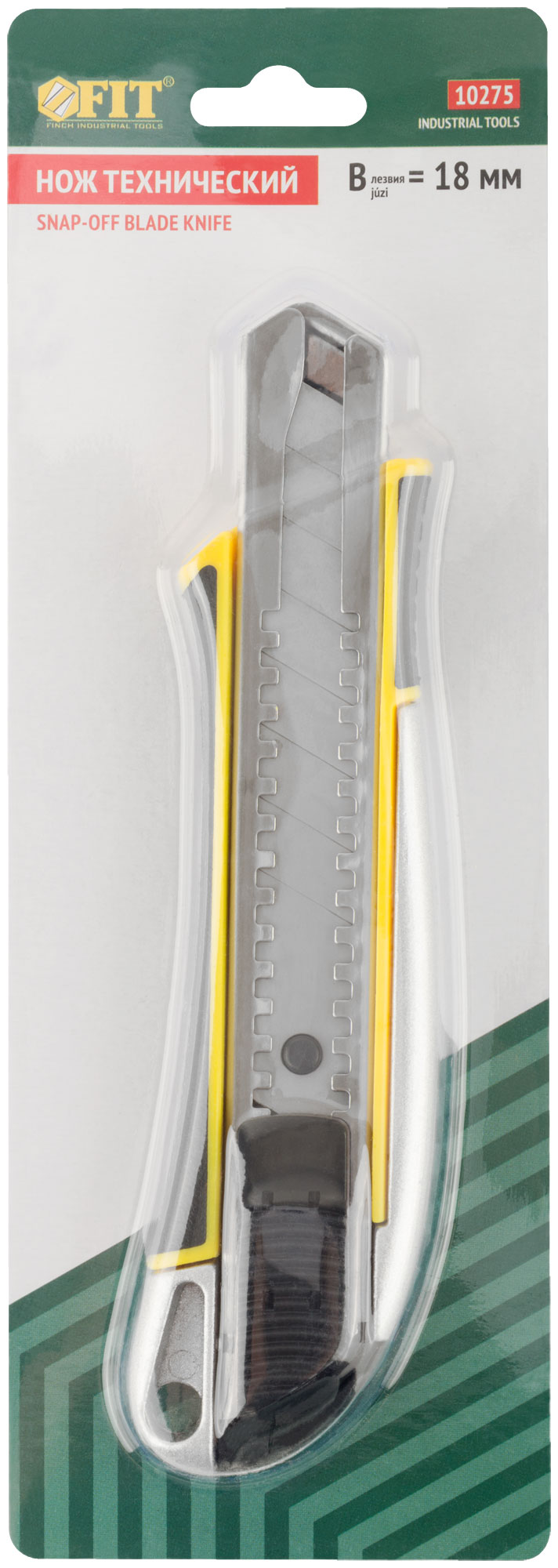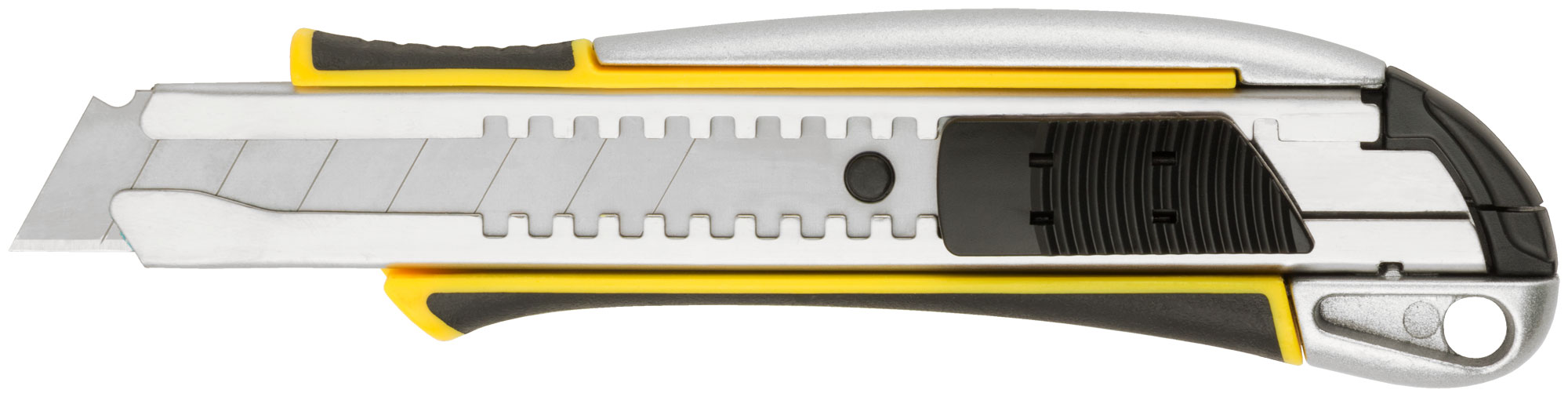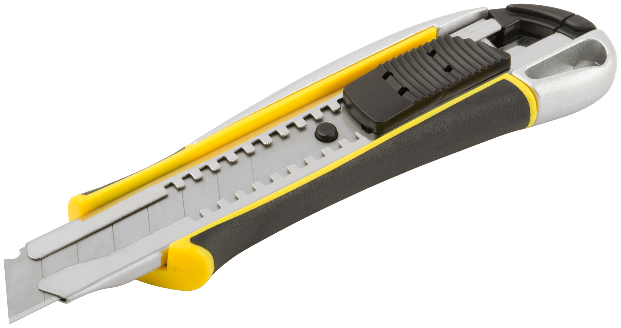 Нож технический 18 мм усиленный прорезиненный, металл. корпус, Профи