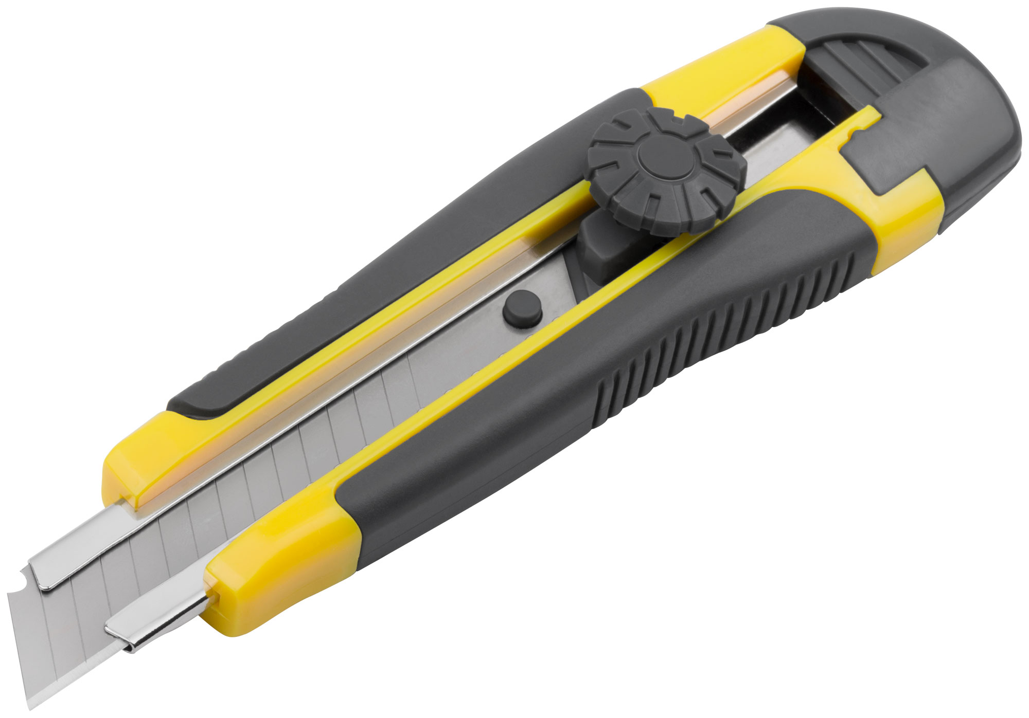 Нож технический 18 мм усиленный прорезиненный, вращ.прижим, лезвие 15 сегментов