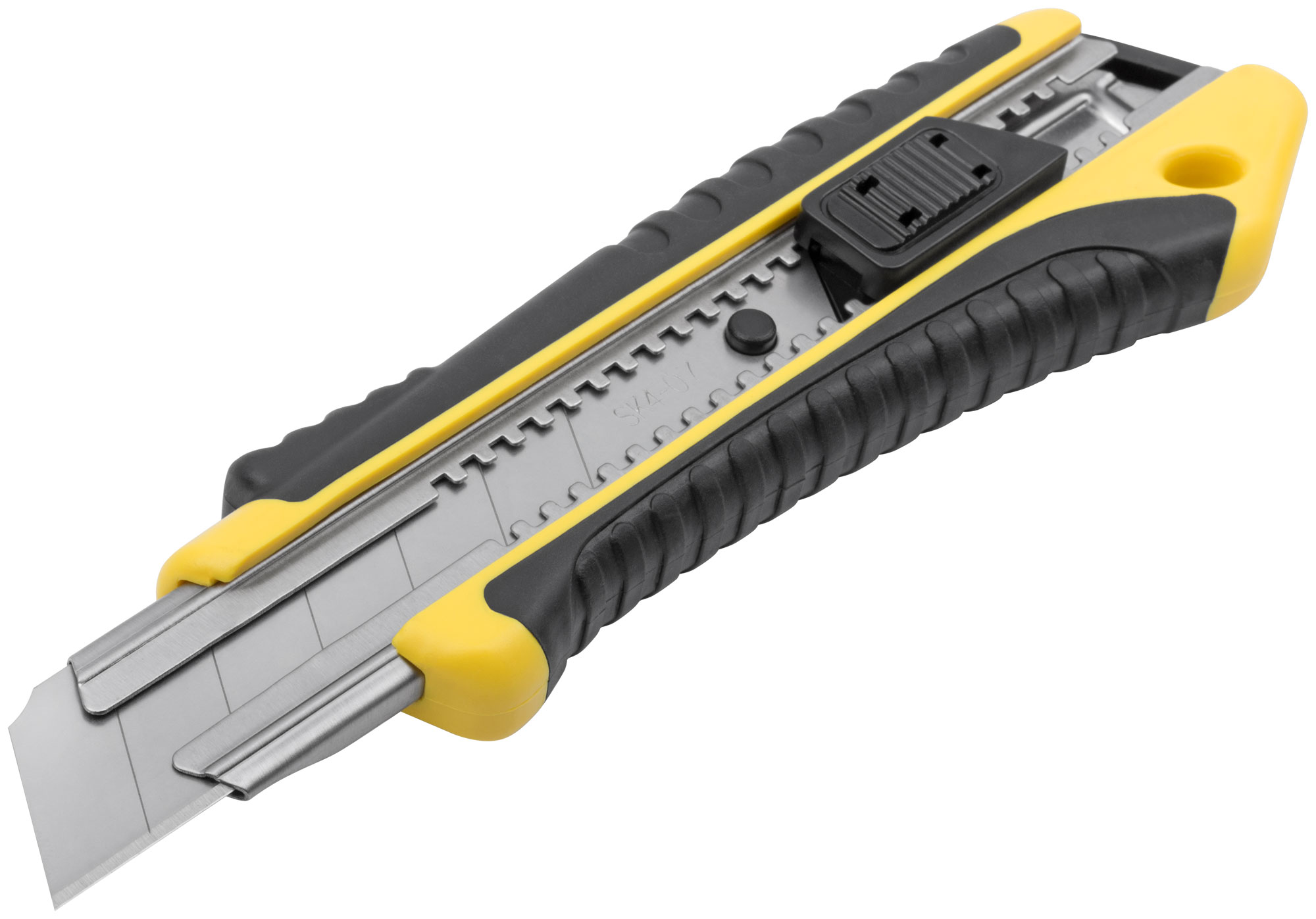 Нож технический 25 мм усиленный прорезиненный, кассета 3 лезвия