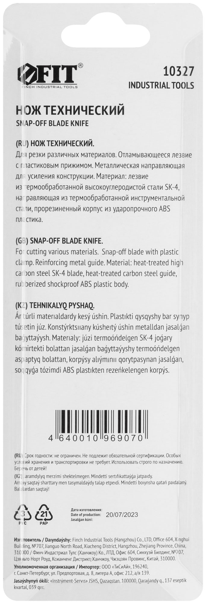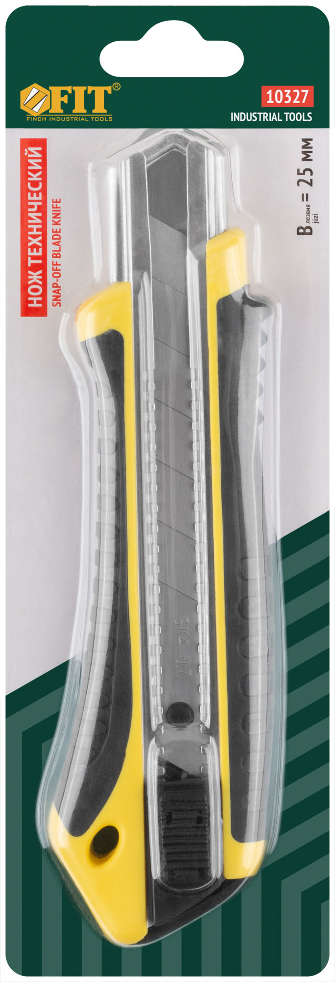 "Отламывающиеся лезвия". Металлическая направлящая. Материал: пластиковый прорезиненный корпус, лезвие из инструментальной стали. Упаковка: блистер.