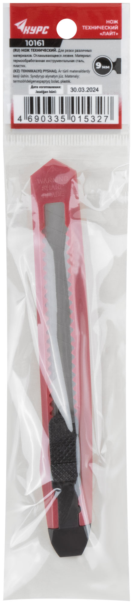 «Лайт». Сегментированное лезвие из инструментальной стали. Пластиковый корпус. Упаковка: п/э пакет с подвесом.