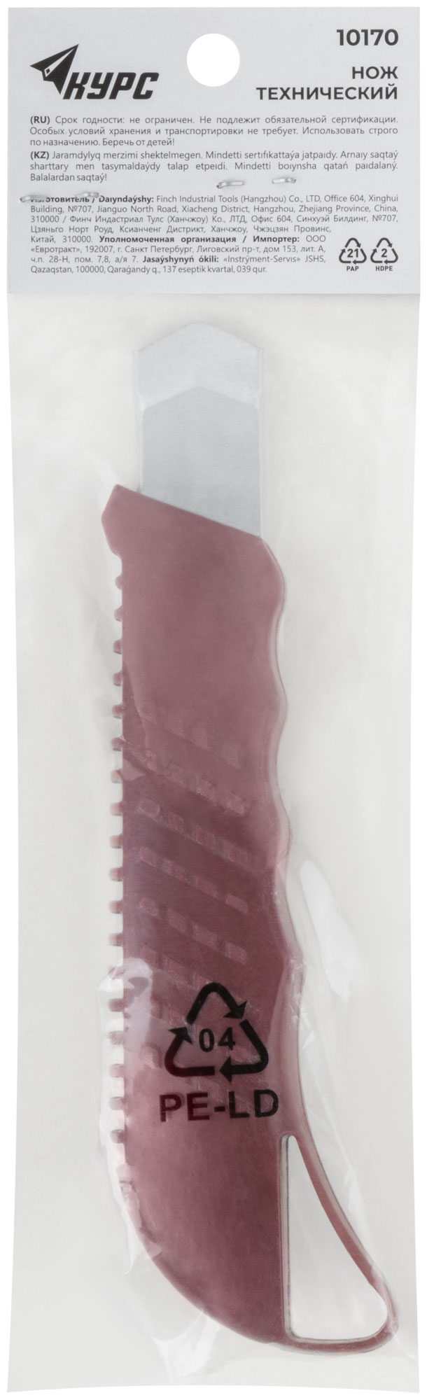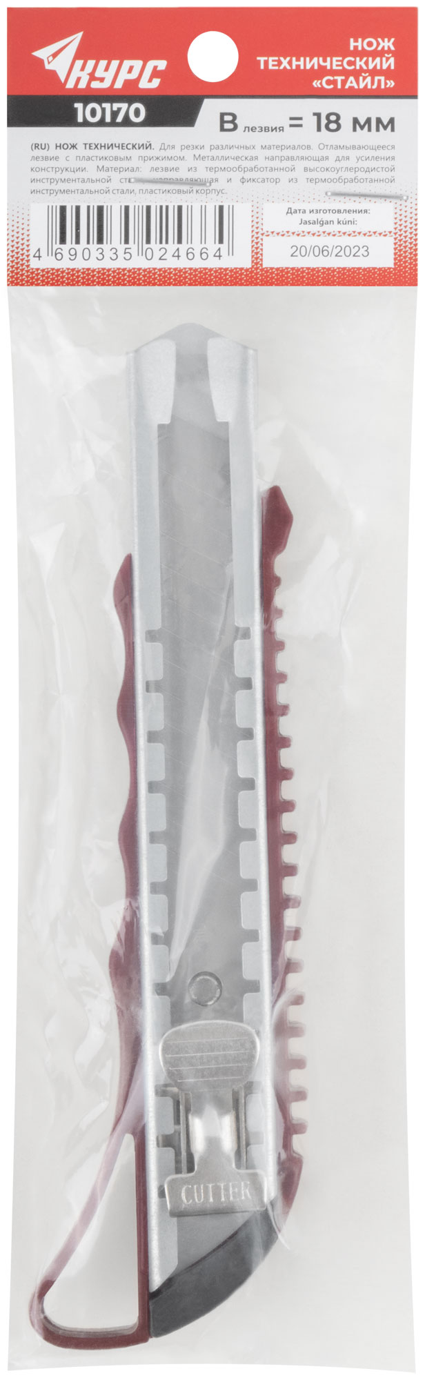 «Стайл». Сегментированное лезвие из высокоуглеродистой инструментальной стали состоит из 15 сегментов. Пластиковый корпус, металлические направляющая и фиксатор лезвия. Упаковка: п/э пакет с картонным подвесом.