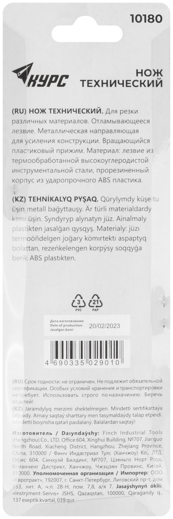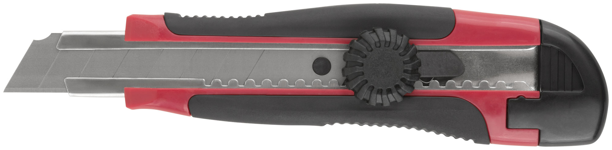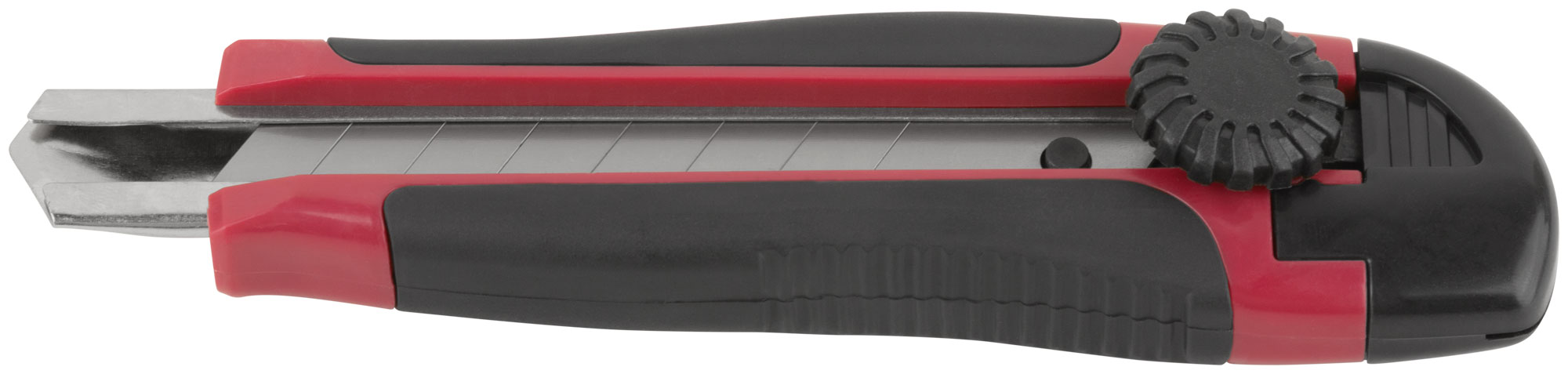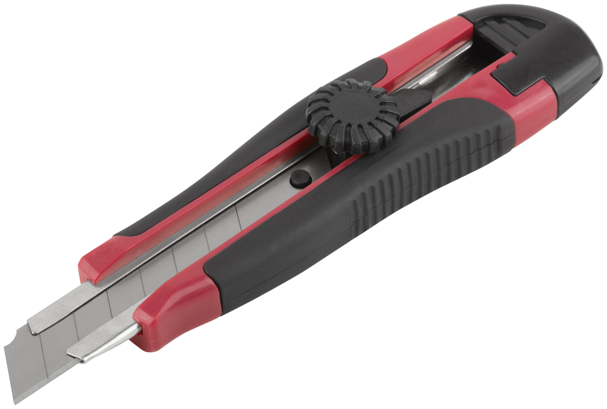 «Стронг». Сегментированное лезвие из высокоуглеродистой инструментальной стали SK-5. Вращающийся пластиковый прижим. Пластиковый прорезиненный корпус, усиленный металлической направляющей. Упаковка: блистер.