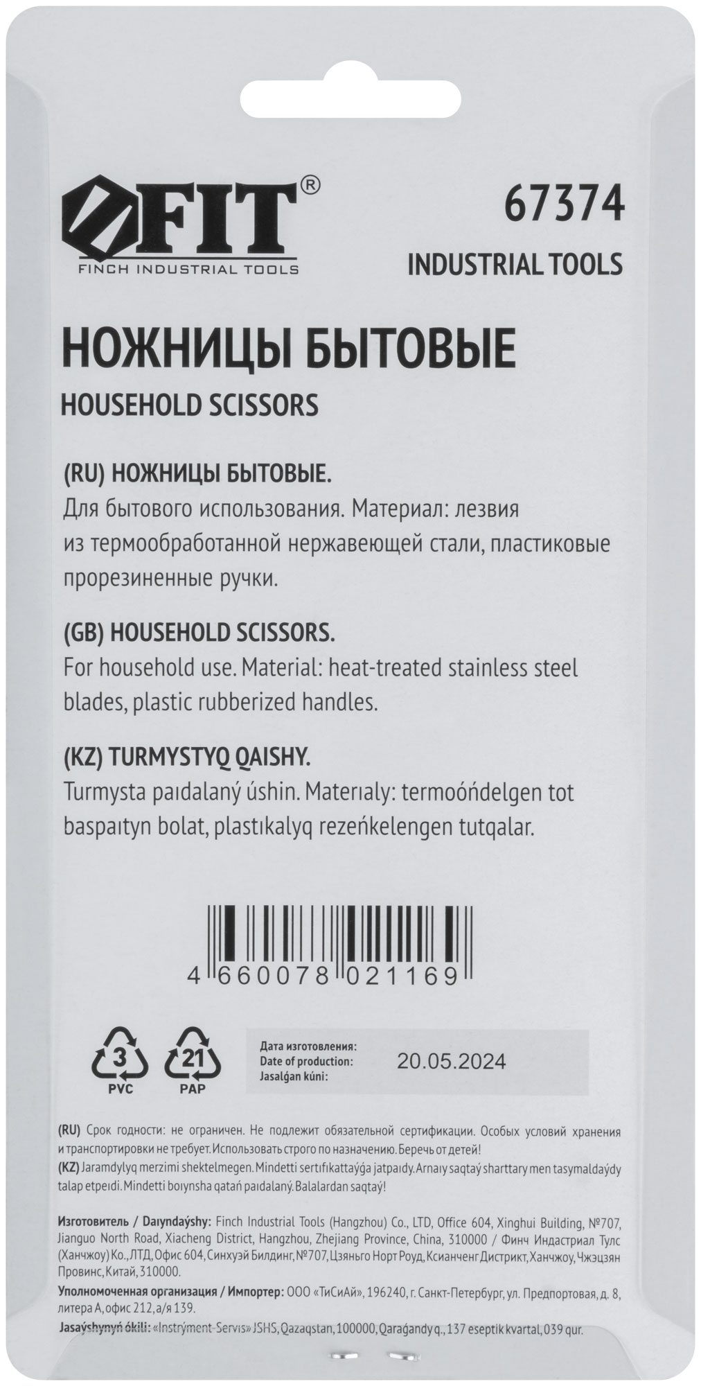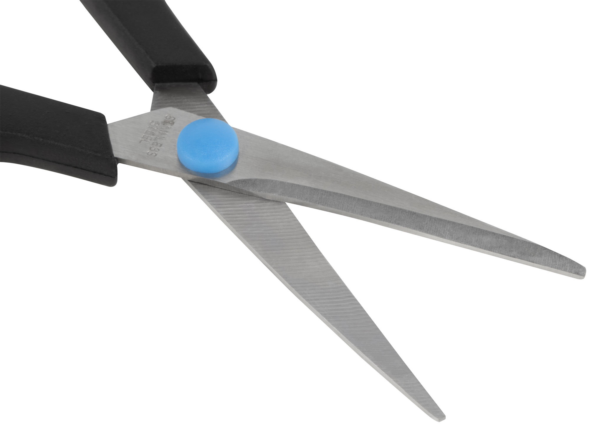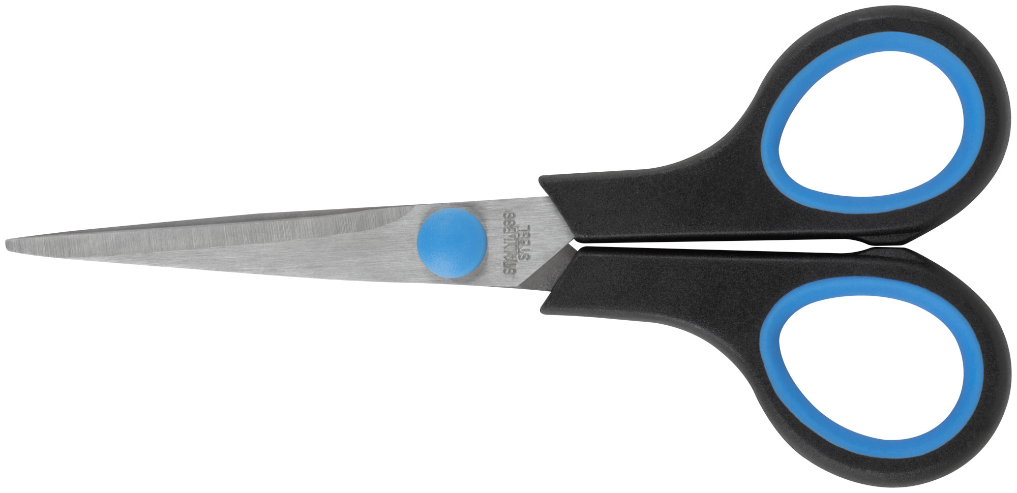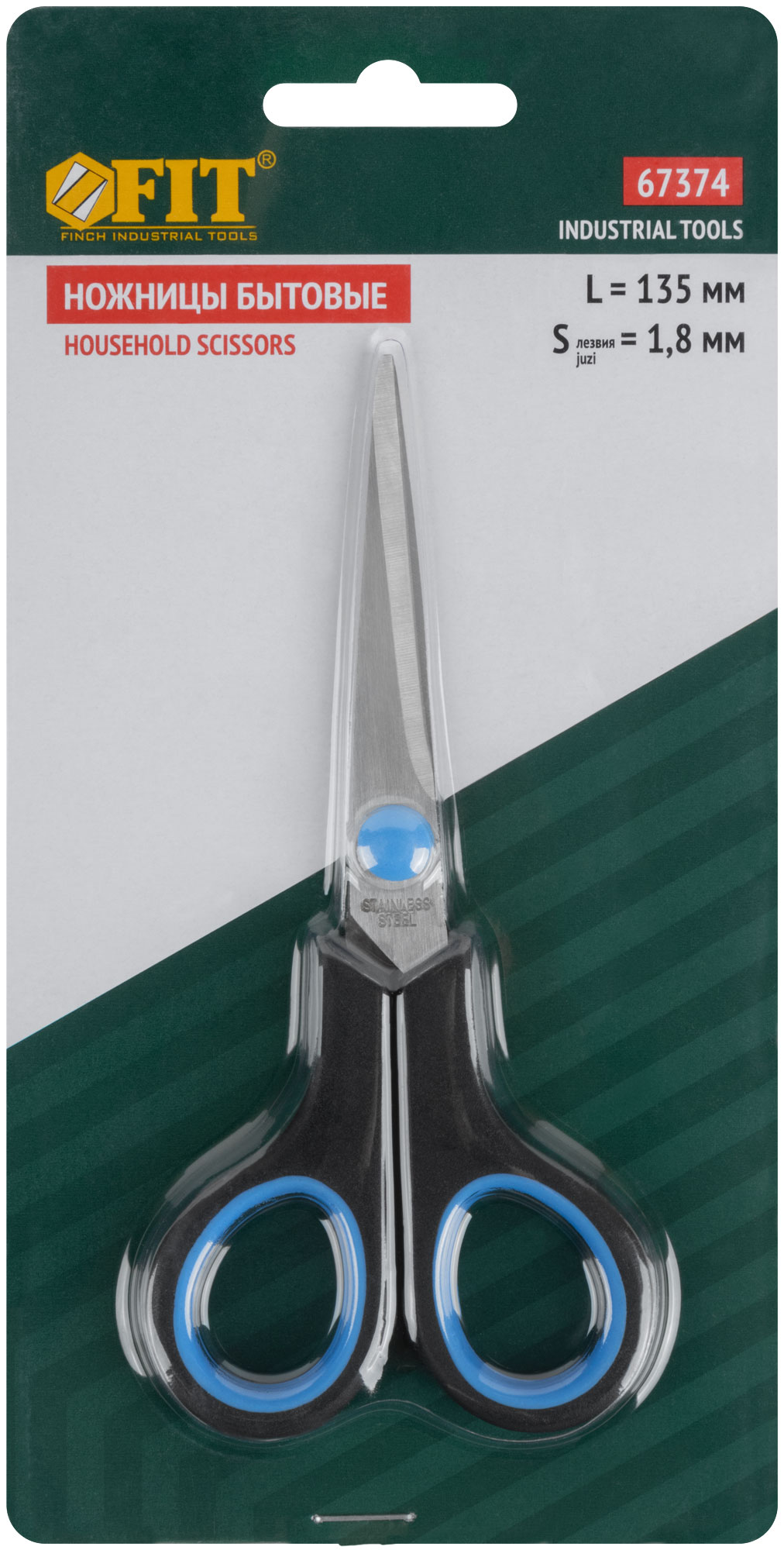 Ножницы бытовые. Толщина лезвия 1,8 мм. Материал: нержавеющая сталь, пластиковые ручки с резиновыми вставками. Упаковка: блистер.