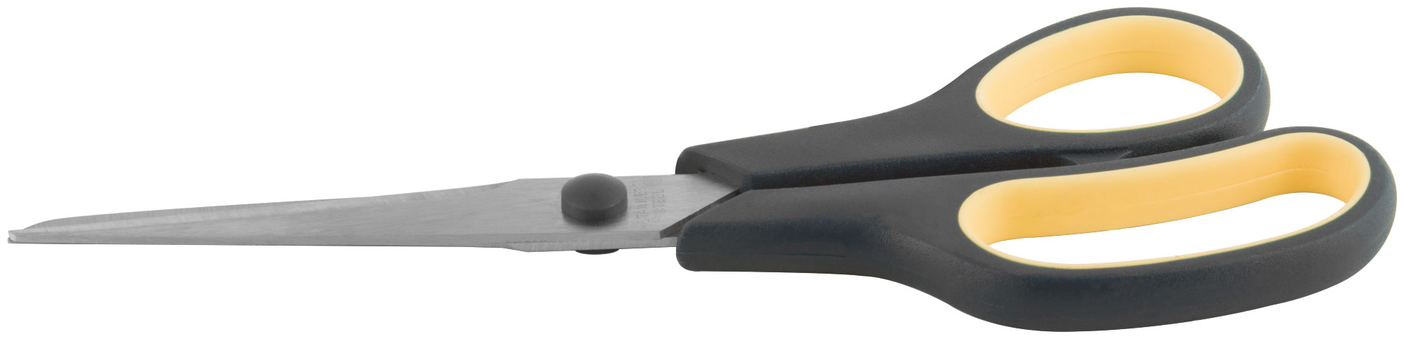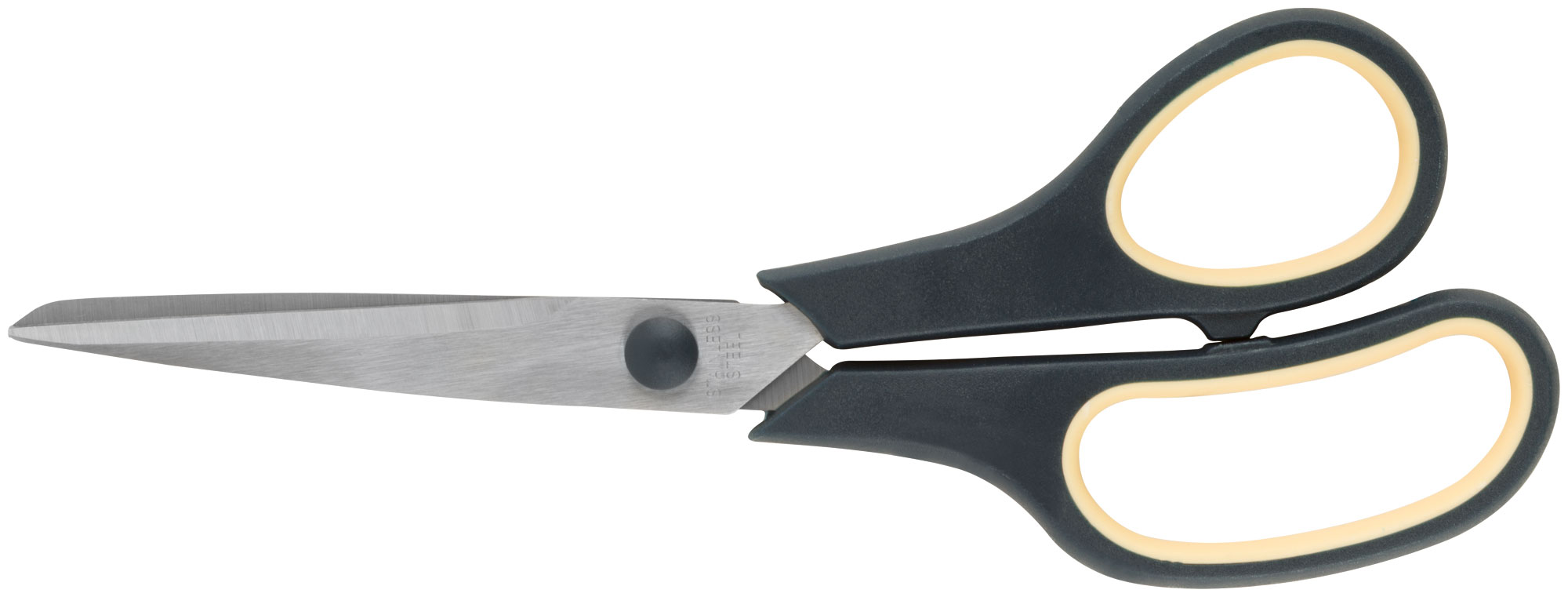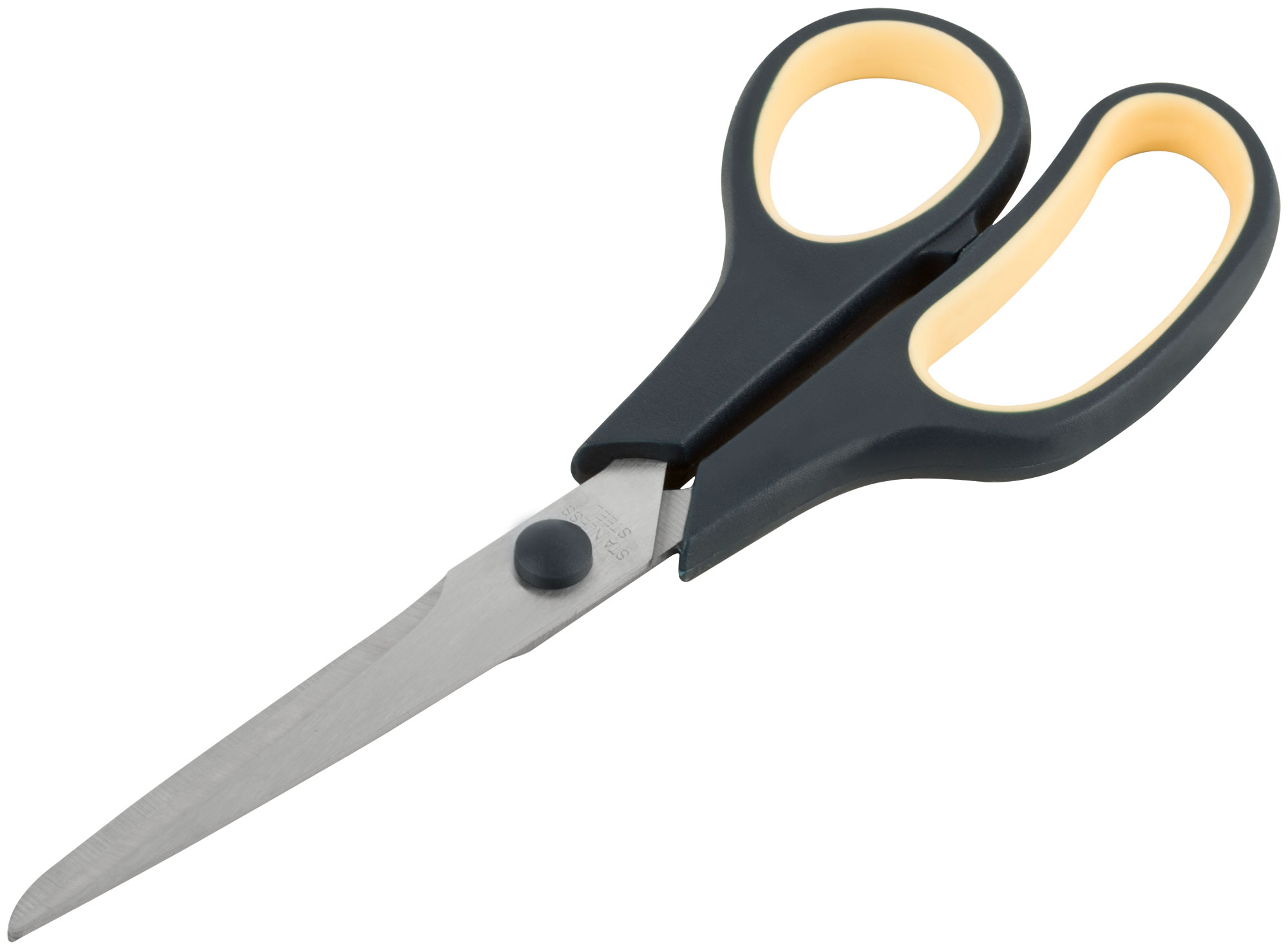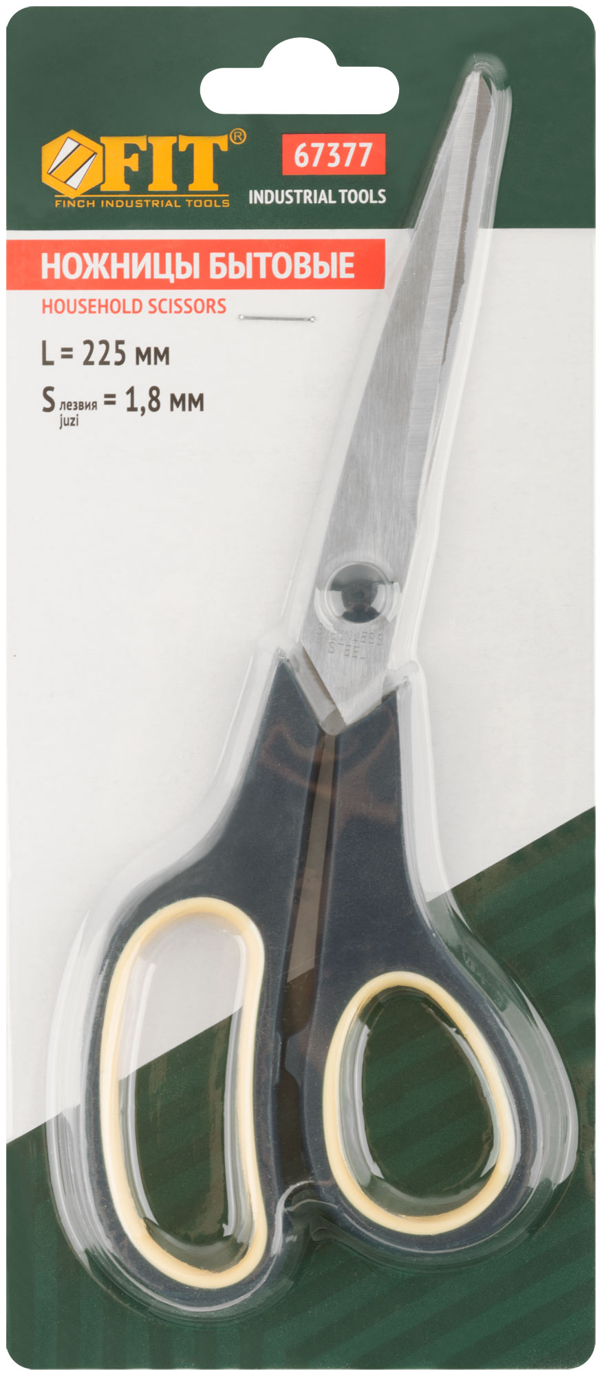 Ножницы бытовые. Толщина лезвия 1,8 мм. Материал: нержавеющая сталь, пластиковые ручки с резиновыми вставками. Упаковка: блистер.
