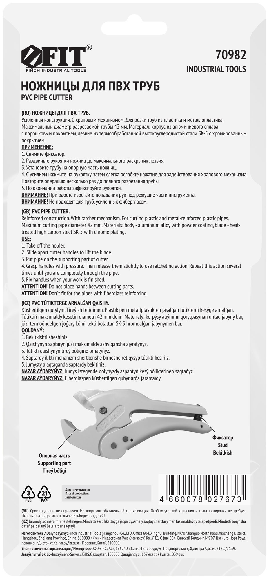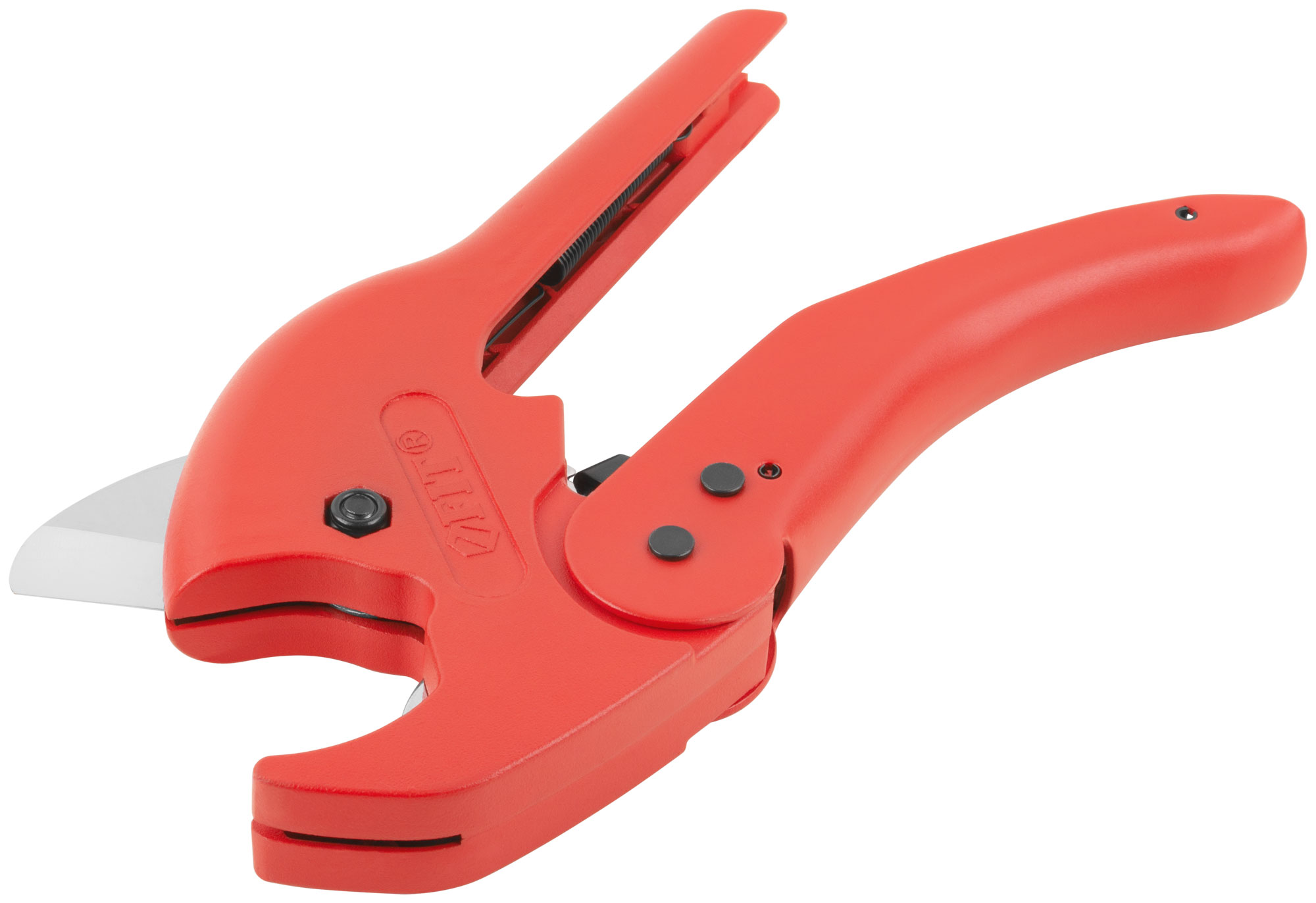 Усиленная конструкция. Для резки труб из пластика и металлопластика. Специальная форма лезвия для предотвращения заминания краев трубок. Материал: корпус из алюминиевого сплава с порошковым покрытием, лезвие из высокоуглеродистой стали SK-5 с хромированным покрытием. Упаковка: блистер.