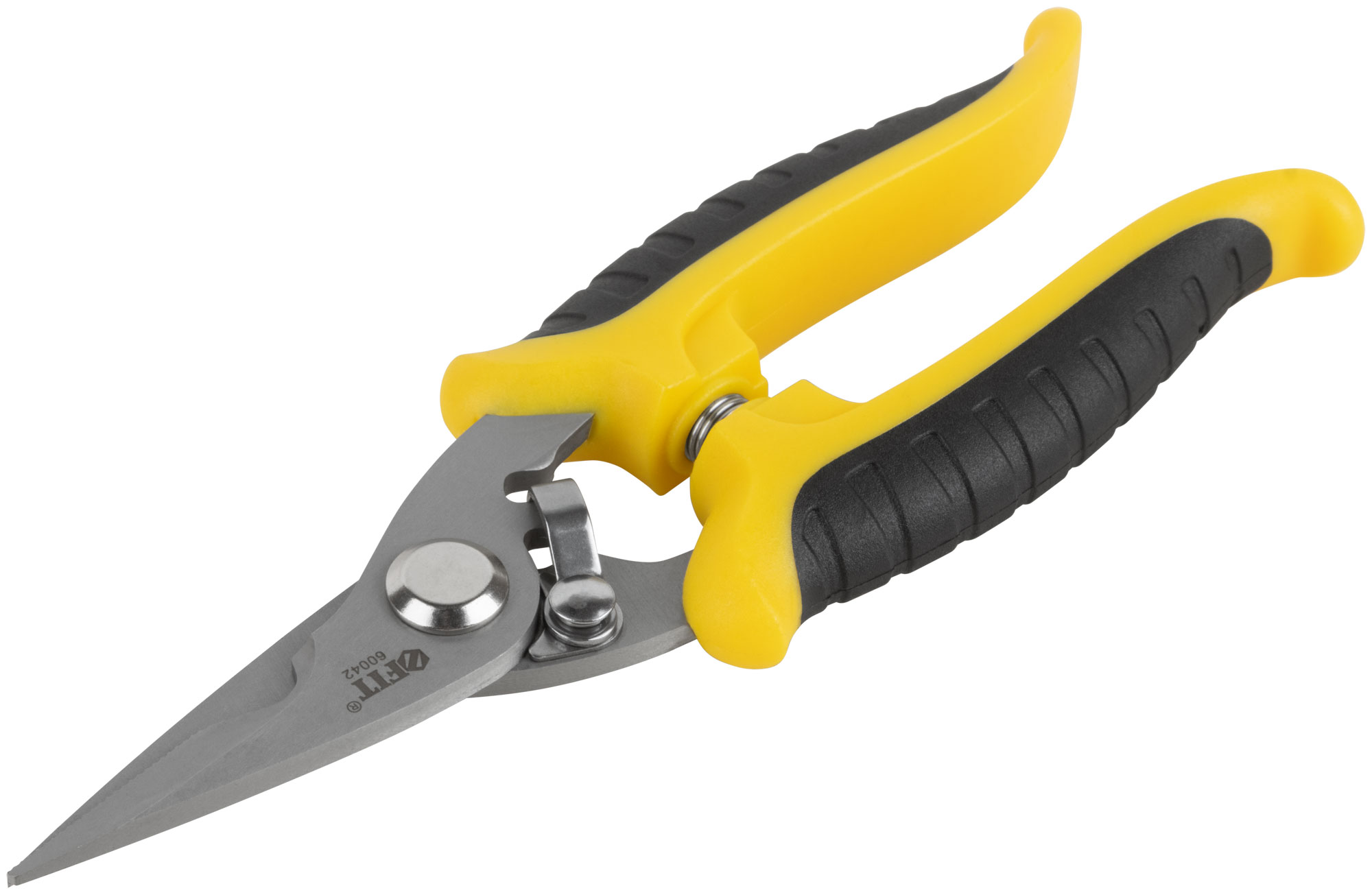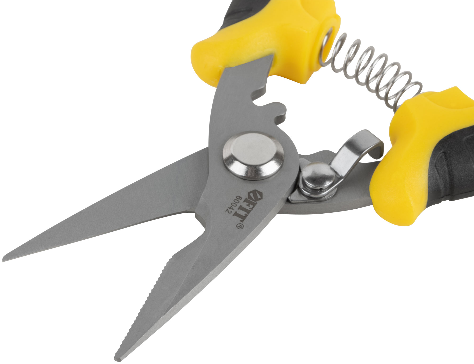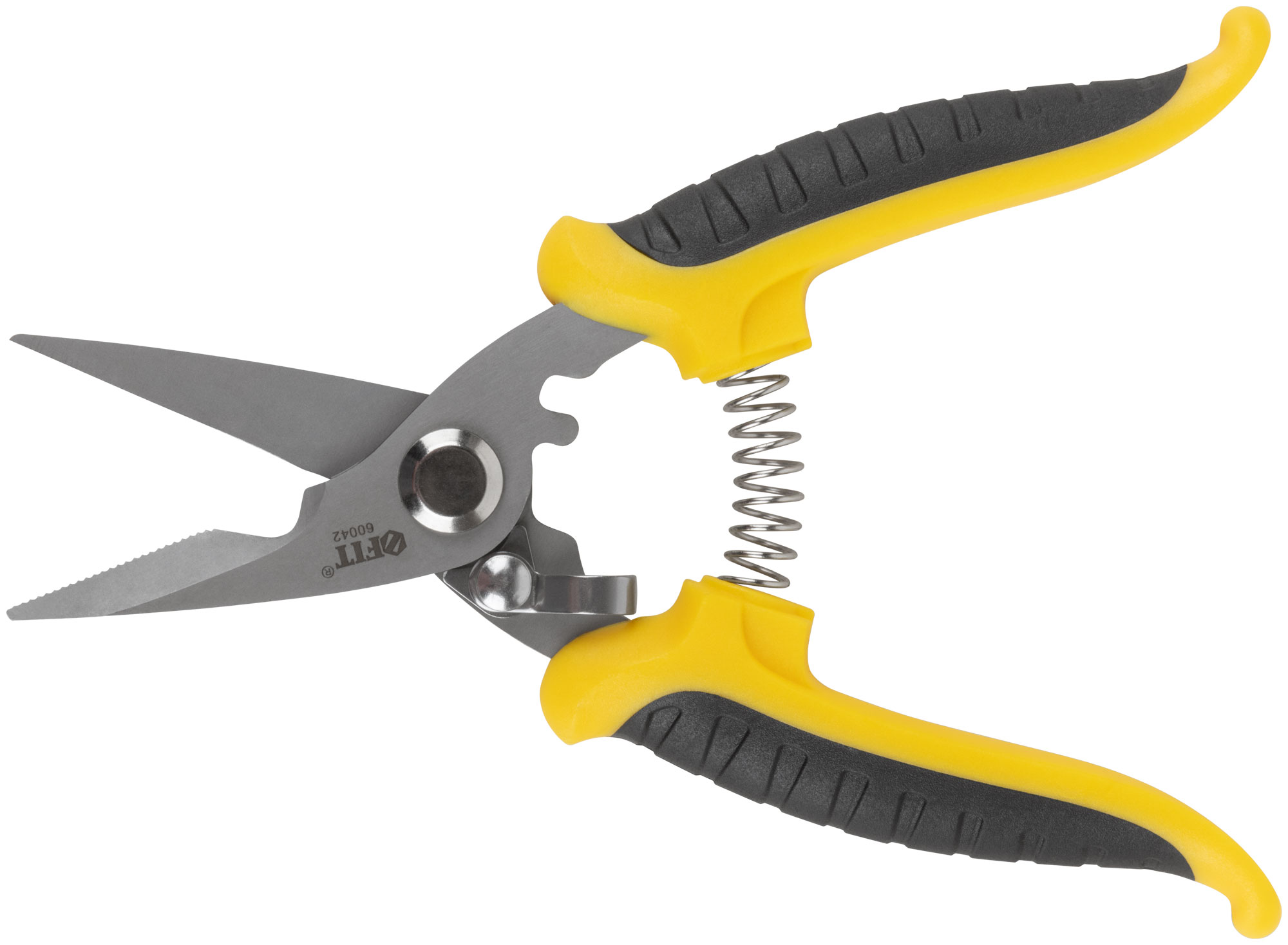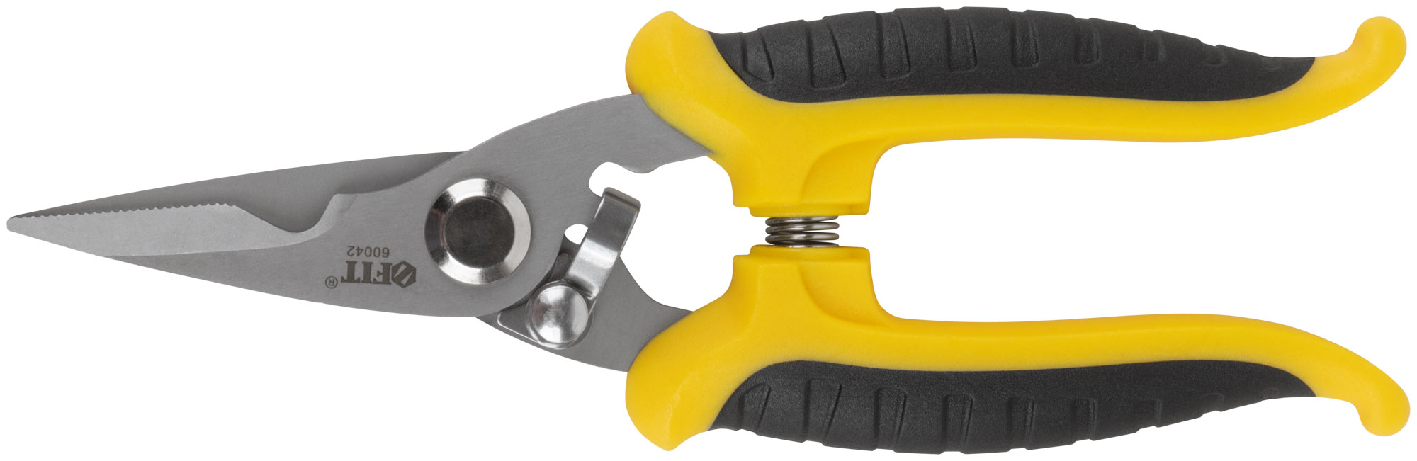 Профи. Для резки кабеля, сеток из проволоки, алюминиевой проволоки и кожи. Специальные зубцы, предотвращающие скольжение при резке. Острое лезвие. Двухцветные мягкие ручки с пружиной. Материал: 65 Mn сталь. Упаковка: блистер.