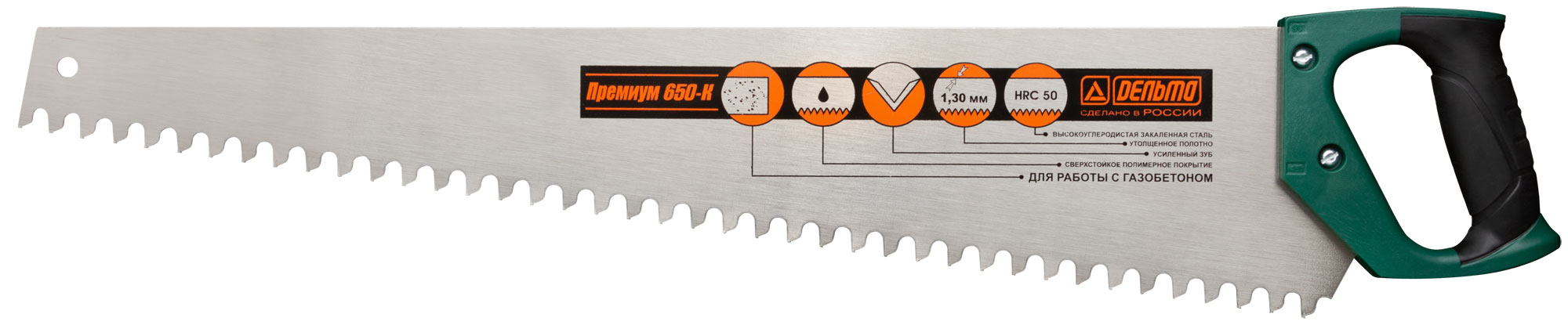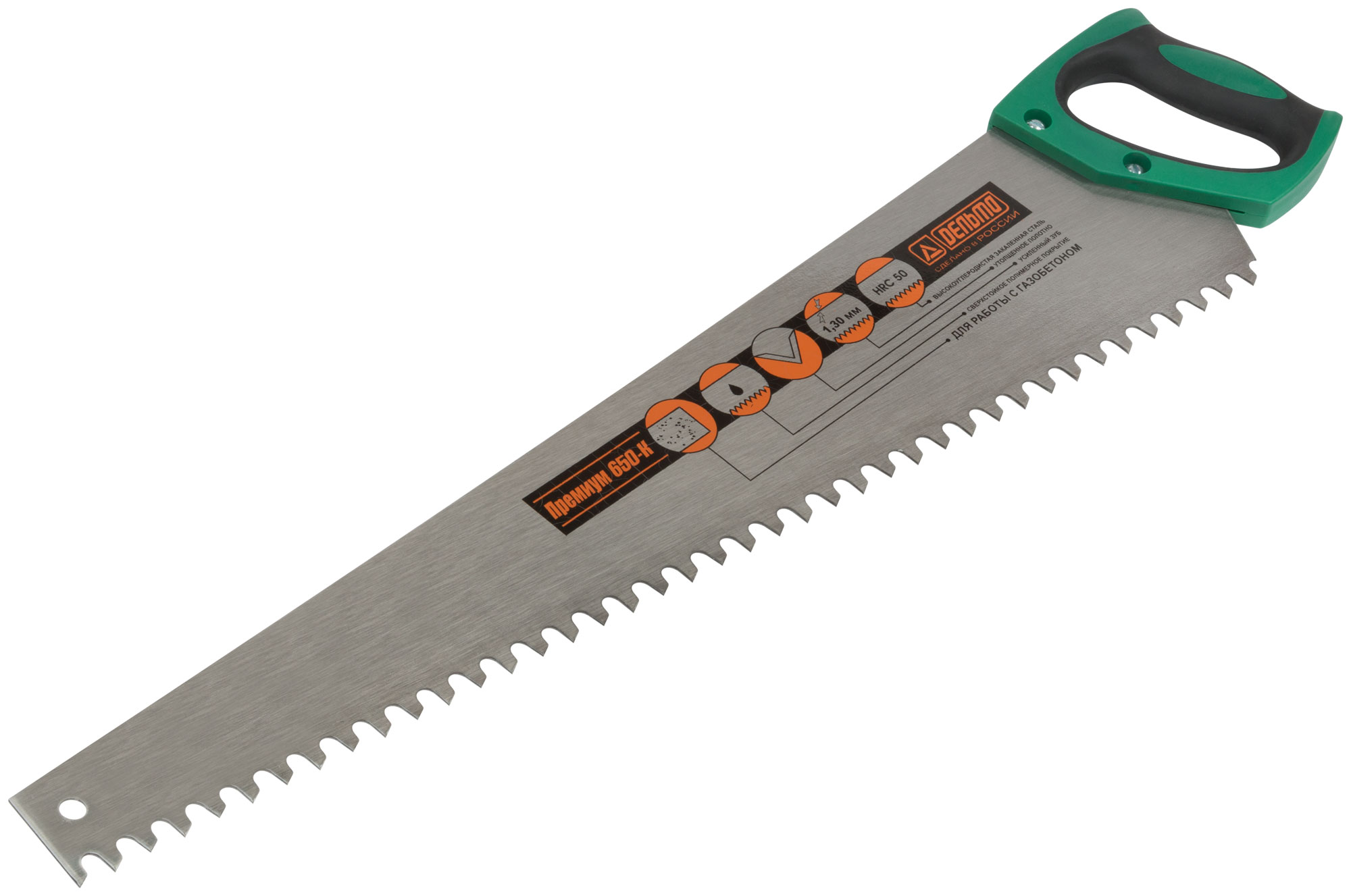 Ножовка по пенобетону "Дельта"(Премиум), трапециевидное полотно, усиленный зуб, шаг 16 мм, 650 мм