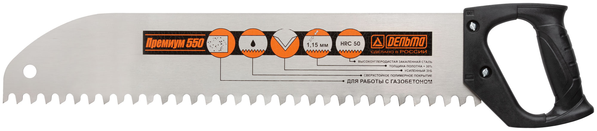 Ножовка по пенобетону "Дельта"(Премиум), закругленное полотно, усиленный зуб, шаг 16 мм, 550 мм