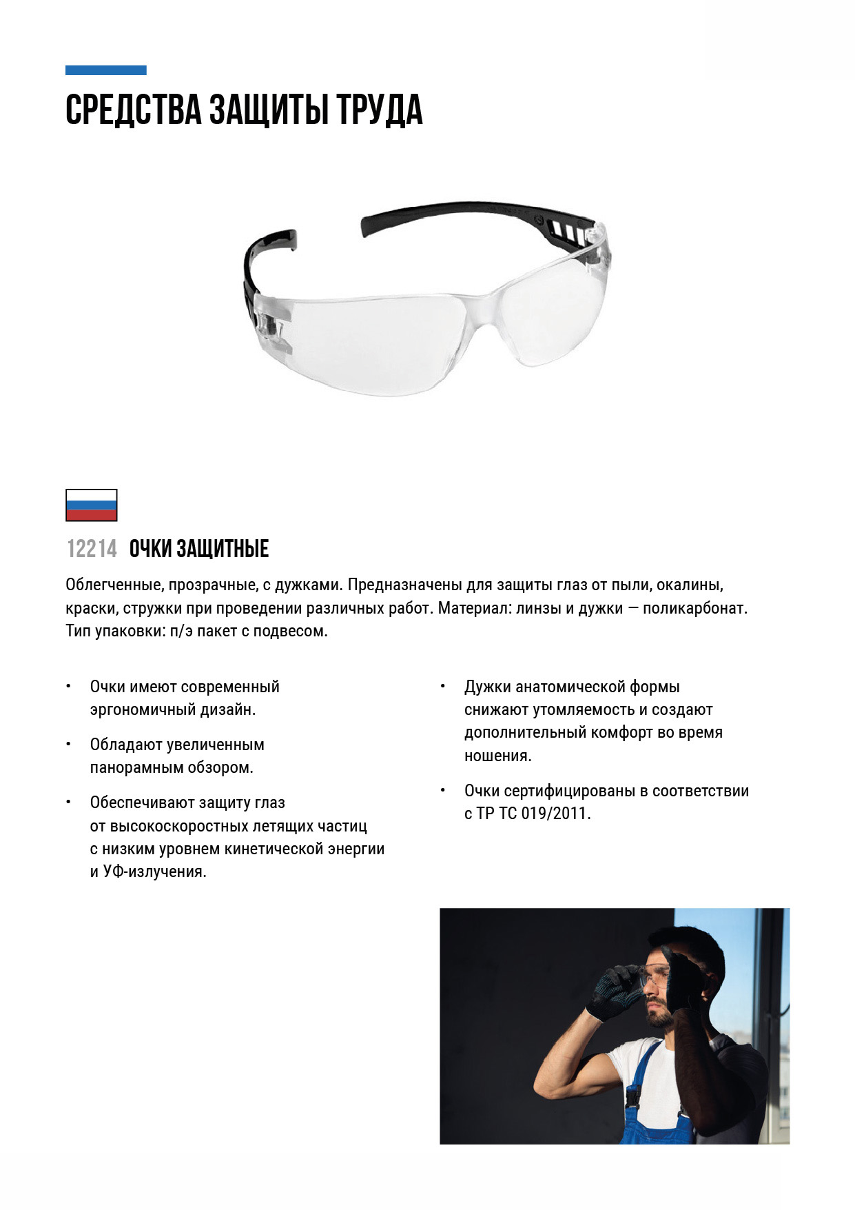 Прозрачные, с дужками. Предназначены для защиты глаз от пыли, окалины, краски, стружки при проведении различных работ. Материал: линзы и дужки - поликарбонат. Упаковка: п/э пакет с подвесом.