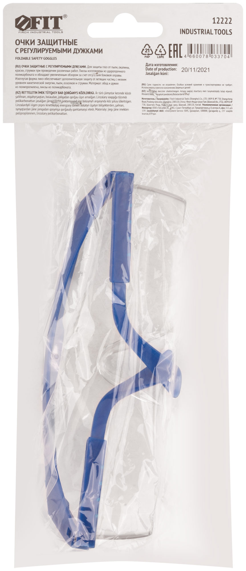 Очки защитные с регулируемыми дужками прозрачные