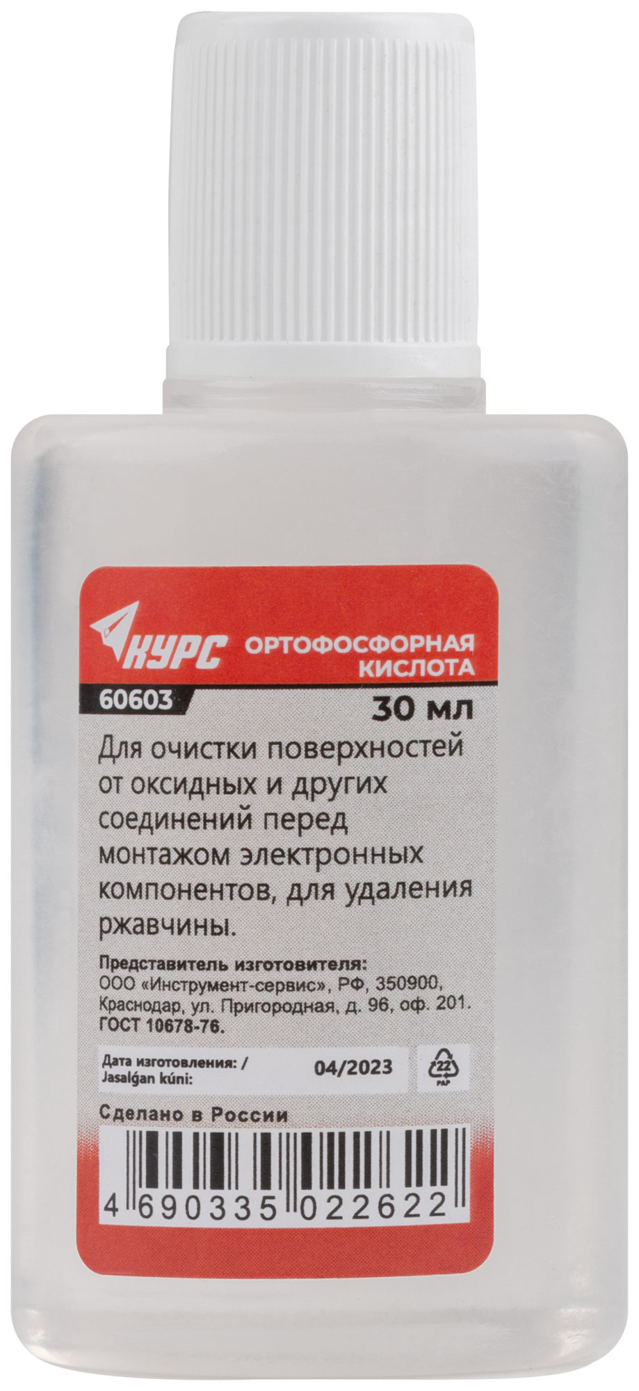 Ортофосфорная кислота ( для очистки поверхностей перед монтажом и удаления ржавчины ) 30 мл