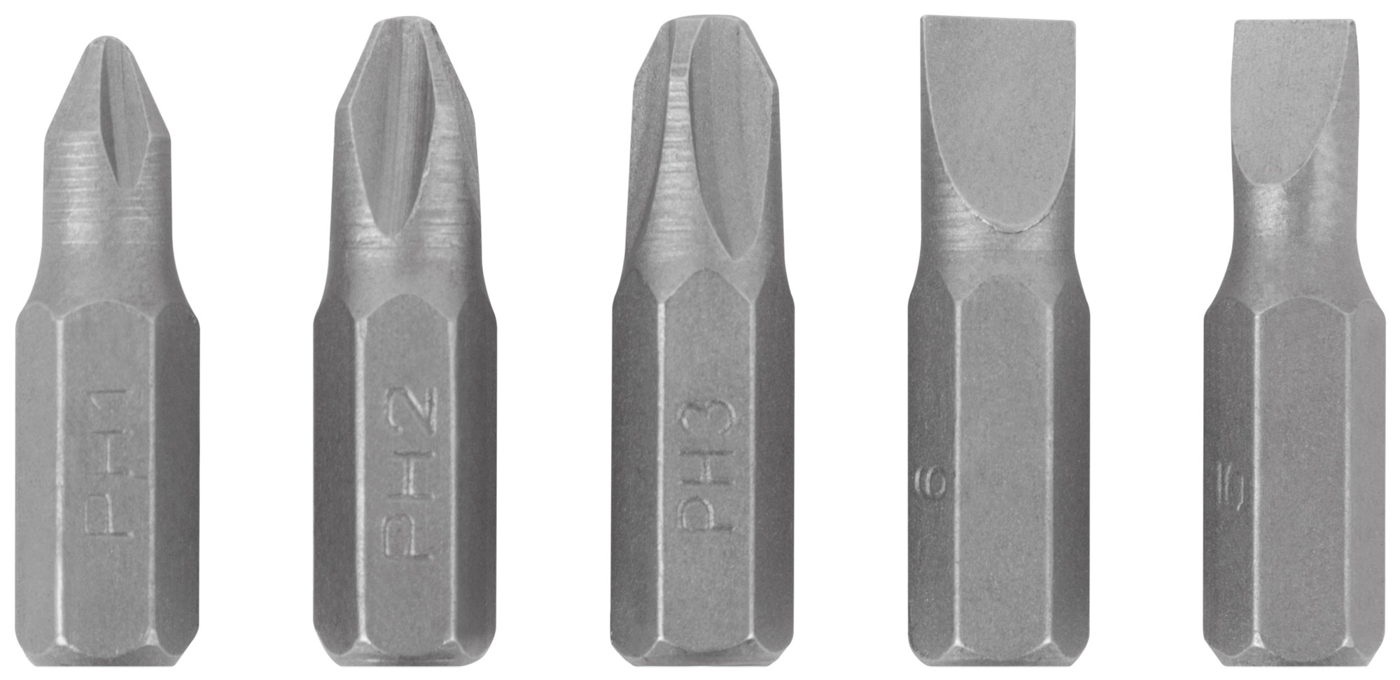 «Стандарт». Усиленная пластиковая ручка с резиновой антискользящей накладкой и отсеком для хранения бит. В комплекте 5 бит (SL5; SL6; PH1; PH2; PH3). Материал: биты из хром-ванадиевой стали, пластиковая прорезиненная ручка.