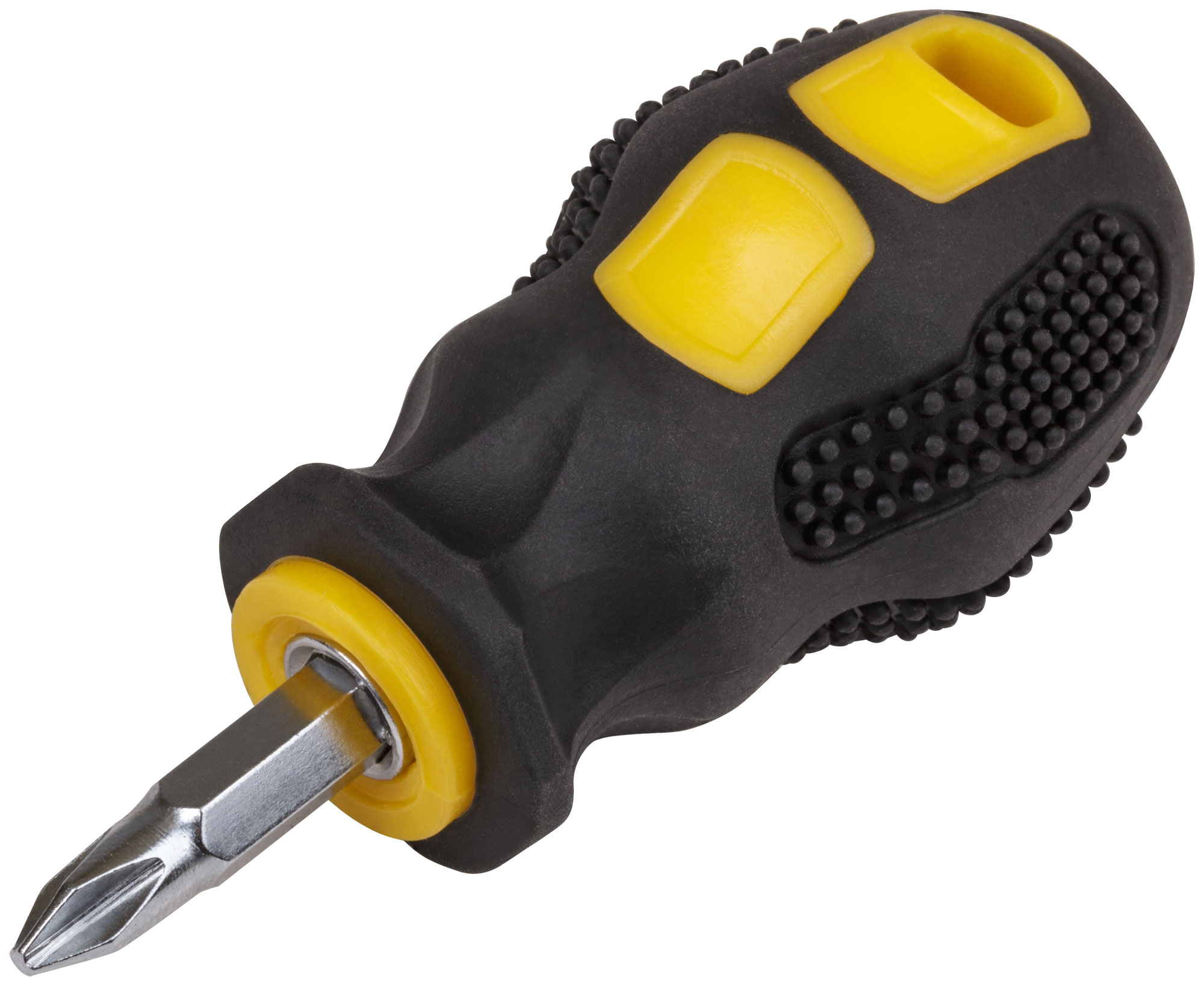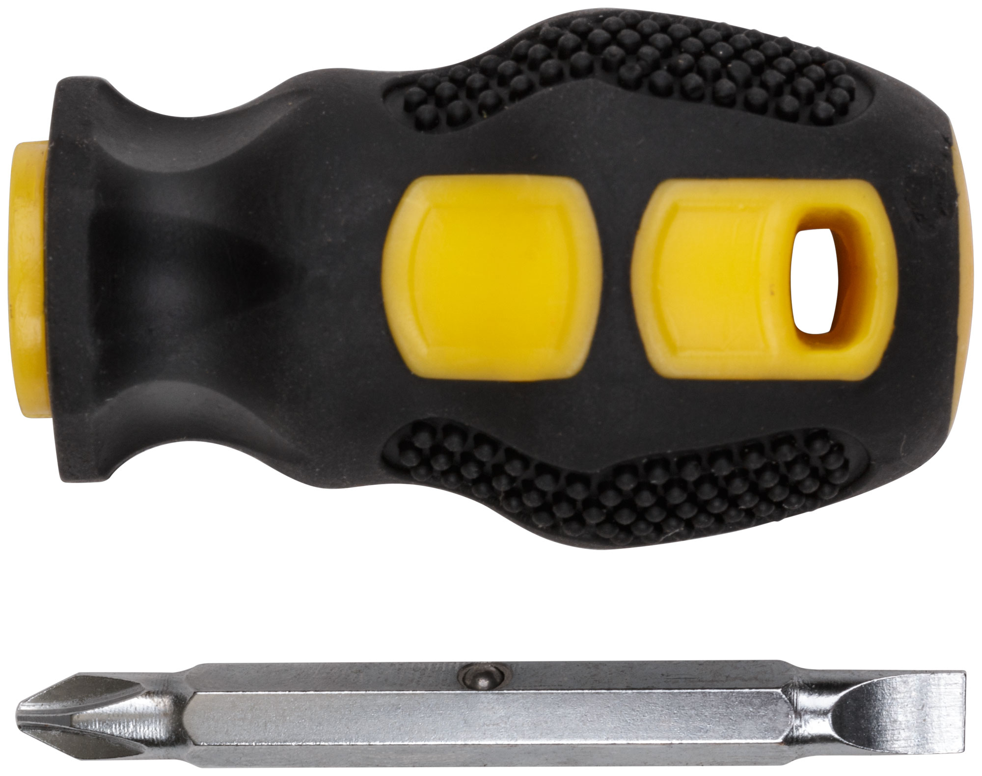Отвертка c переставным жалом "коротыш", CrV сталь, прорезиненная ручка 6х25 мм PH2/SL6