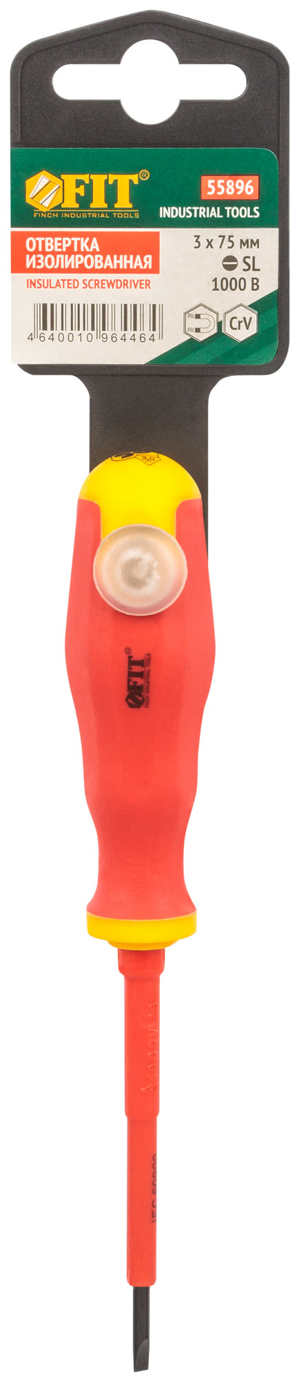 Отвертка изолированная 1000 В, CrV сталь, прорезиненная ручка 3х75 мм SL