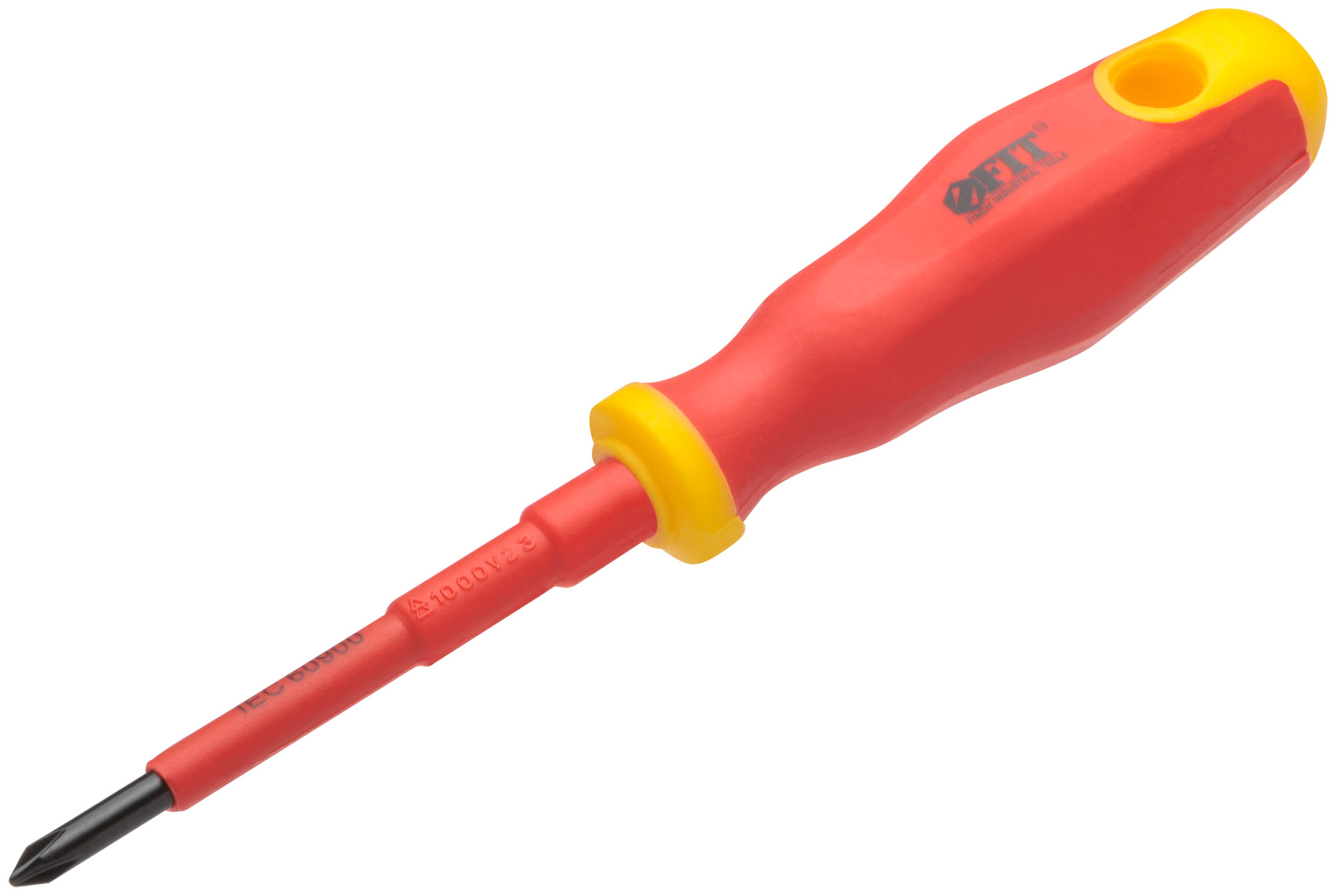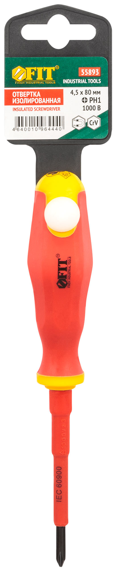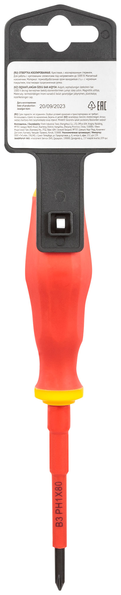 Отвертка изолированная 1000 В, CrV сталь, прорезиненная ручка 4,5х80 мм РН1