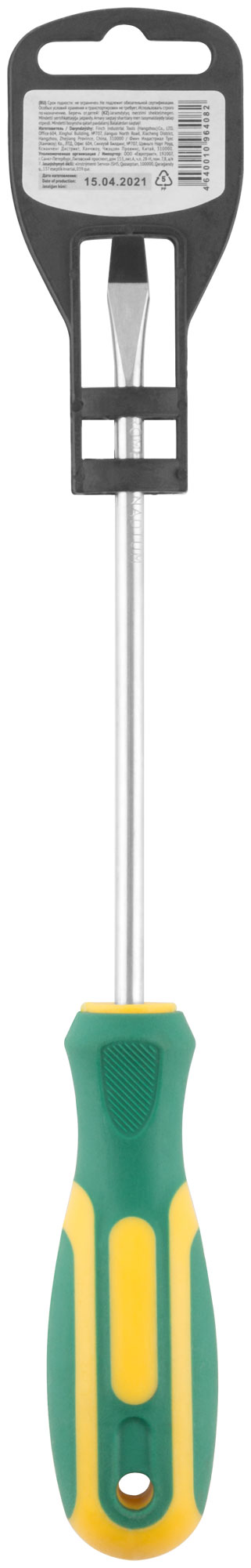 Для работы с крепежными элементами. Магнитный наконечник. Материал: хром-ванадиевая сталь, пластиковая прорезиненная ручка. Упаковка: пластиковый подвес.