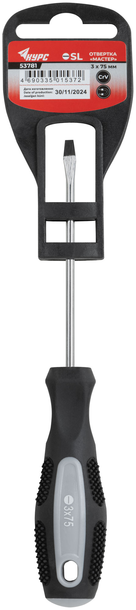 Отвертка "Мастер", CrV сталь, прорезиненная ручка 3х75 мм SL