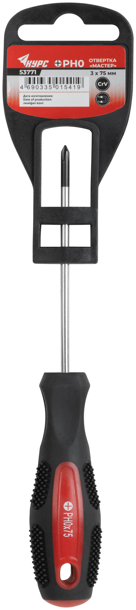 Отвертка "Мастер", CrV сталь, прорезиненная ручка 3x75 мм PH0