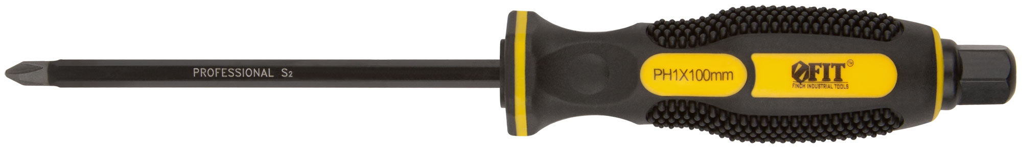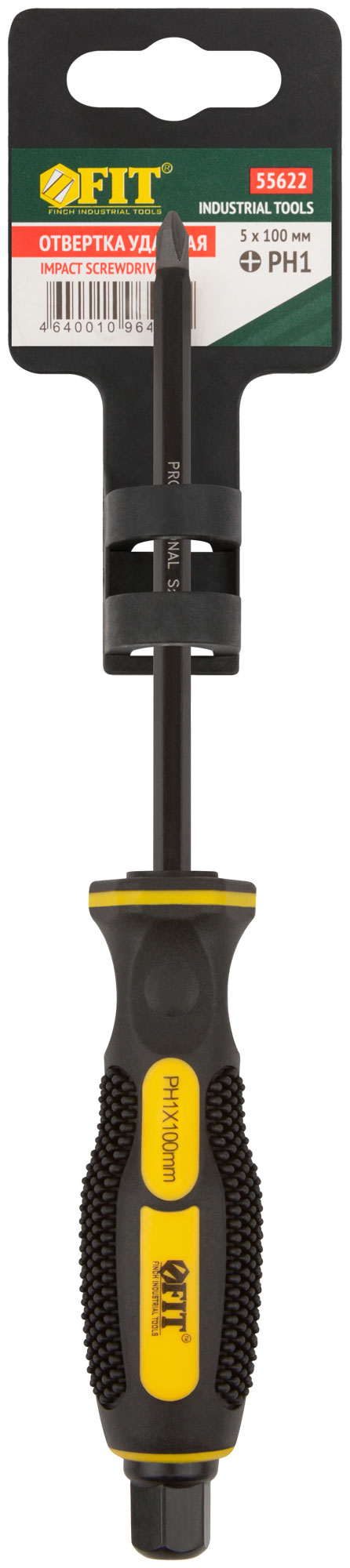 Отверткa ударная, сталь S2, шестигран.жало, боек под ключ, прорезиненная ручка, Профи 5х100 мм PH1