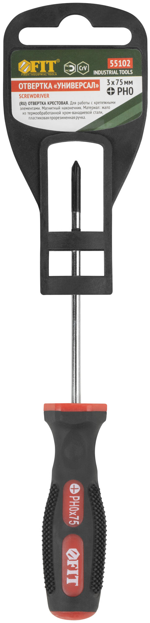 Отвертка "Универсал", CrV сталь, прорезиненная ручка 3х75 мм РН0